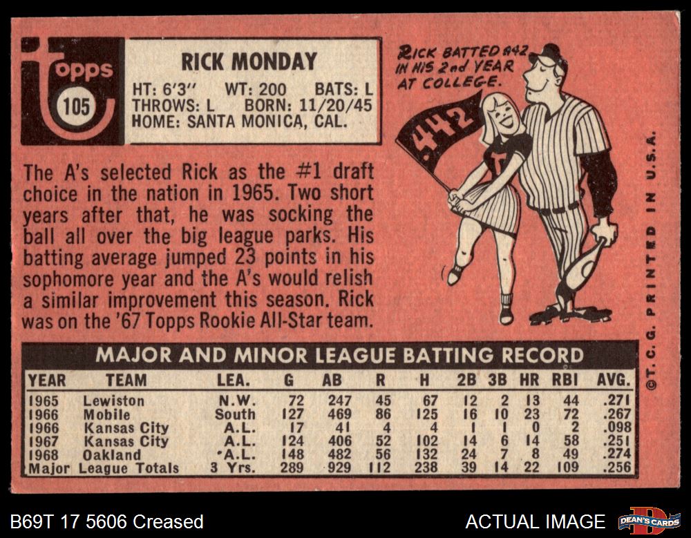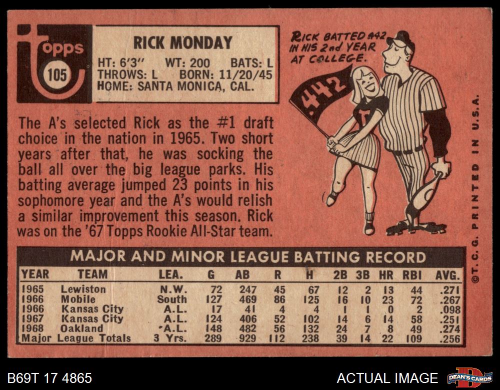 1969 Topps #105 Rick Monday 3 - VG