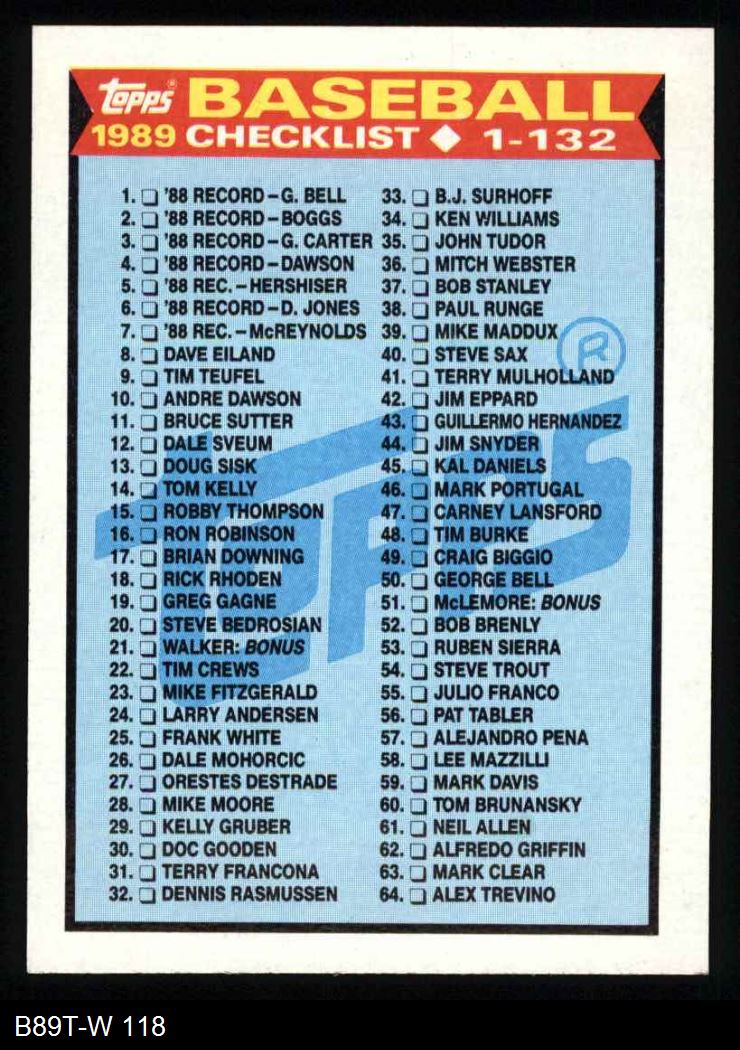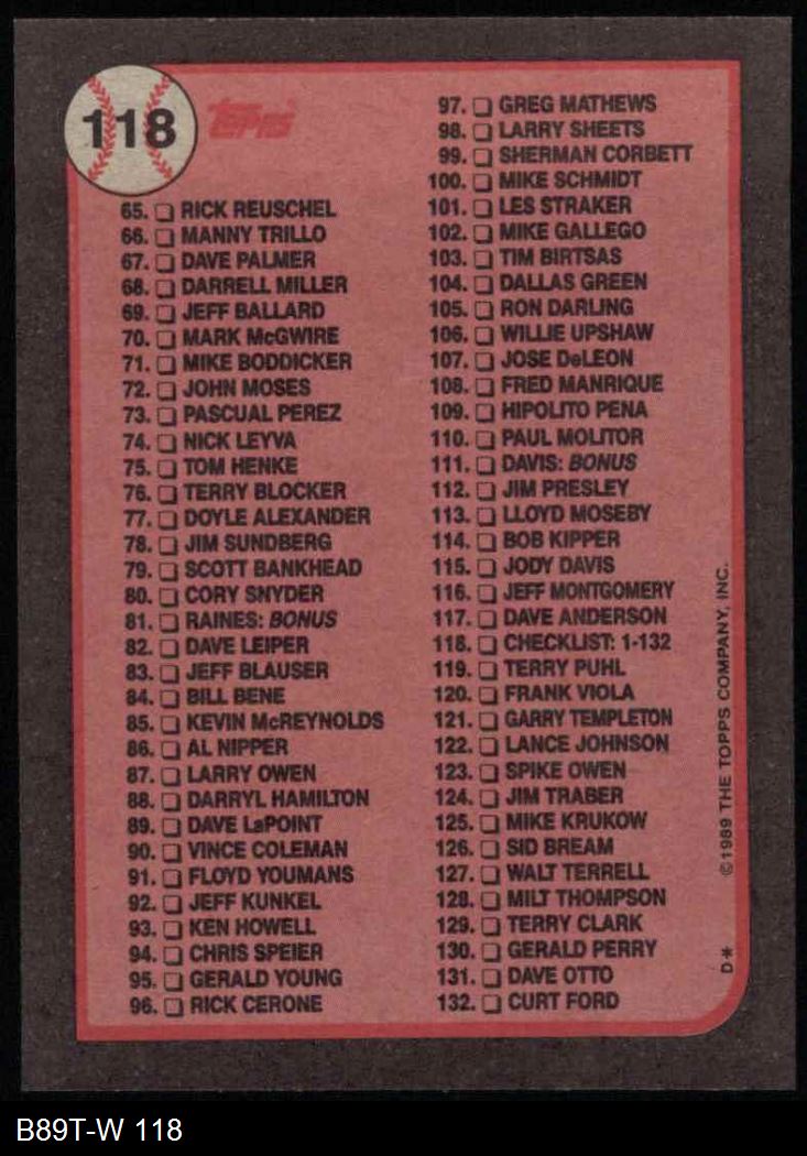 1989 Topps #118 Checklist 1-132