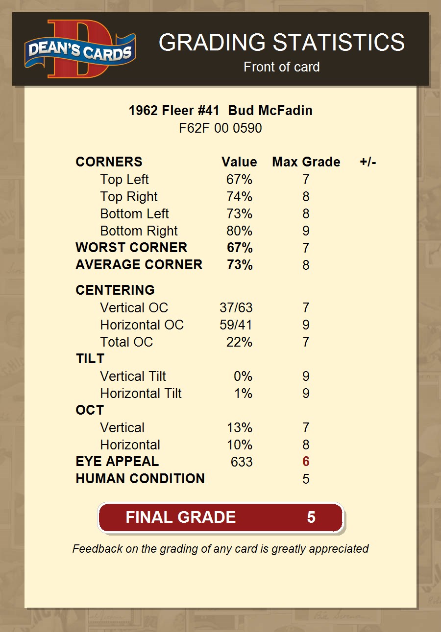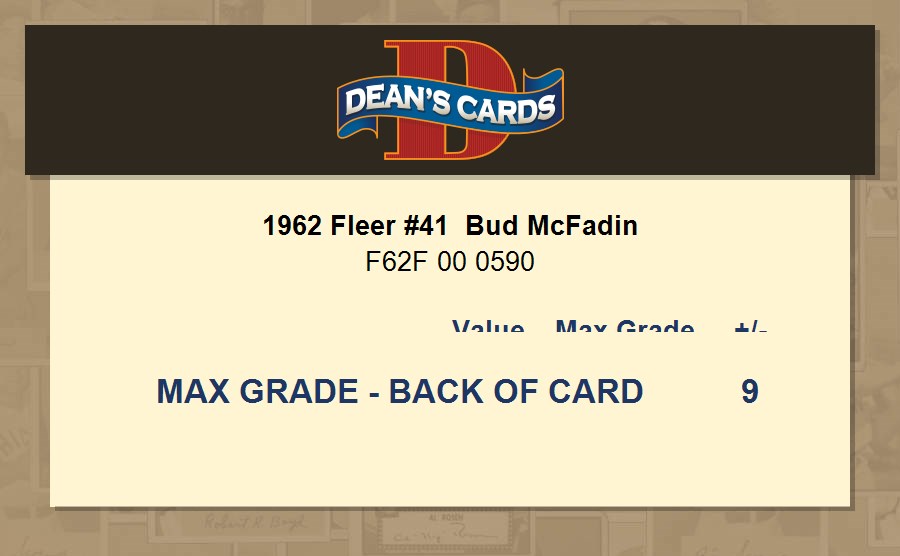 1962 Fleer #41 Bud McFadin