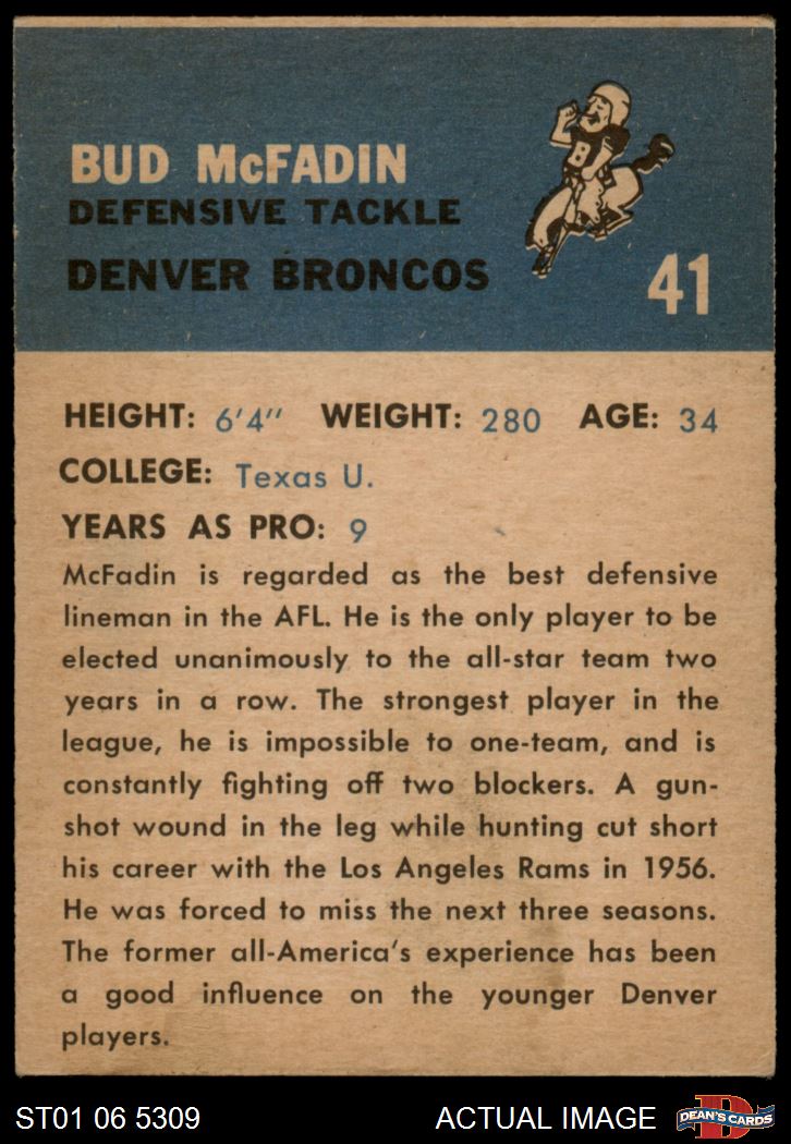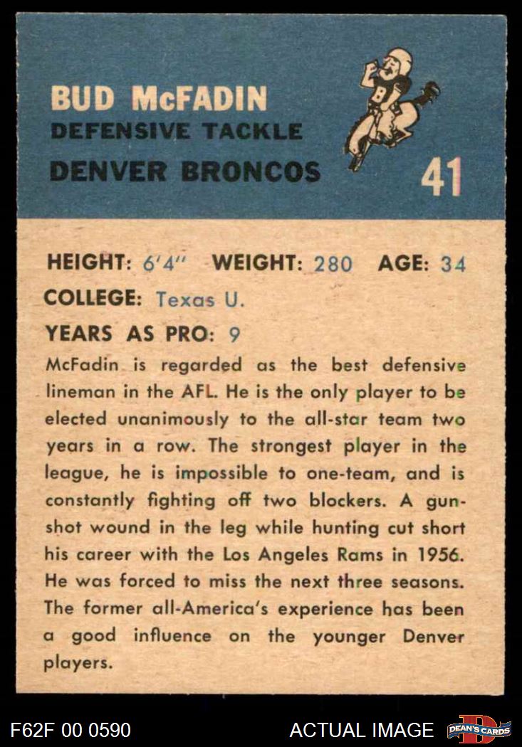 1962 Fleer Football (251 available)1962 Fleer Broncos (35 available)