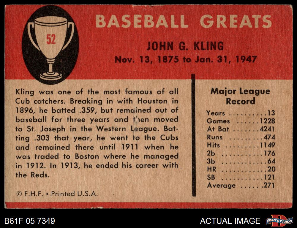 1961 Fleer #52 Johnny Kling 2 - GOOD