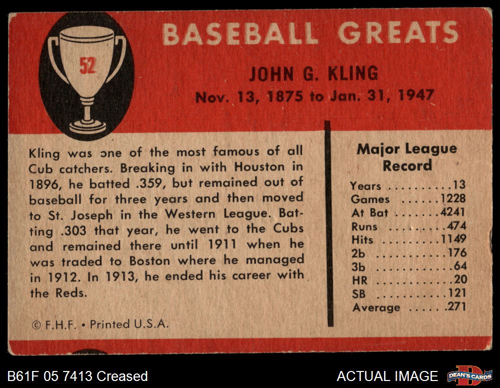 1961 Fleer #52 Johnny Kling Front Thumbnail