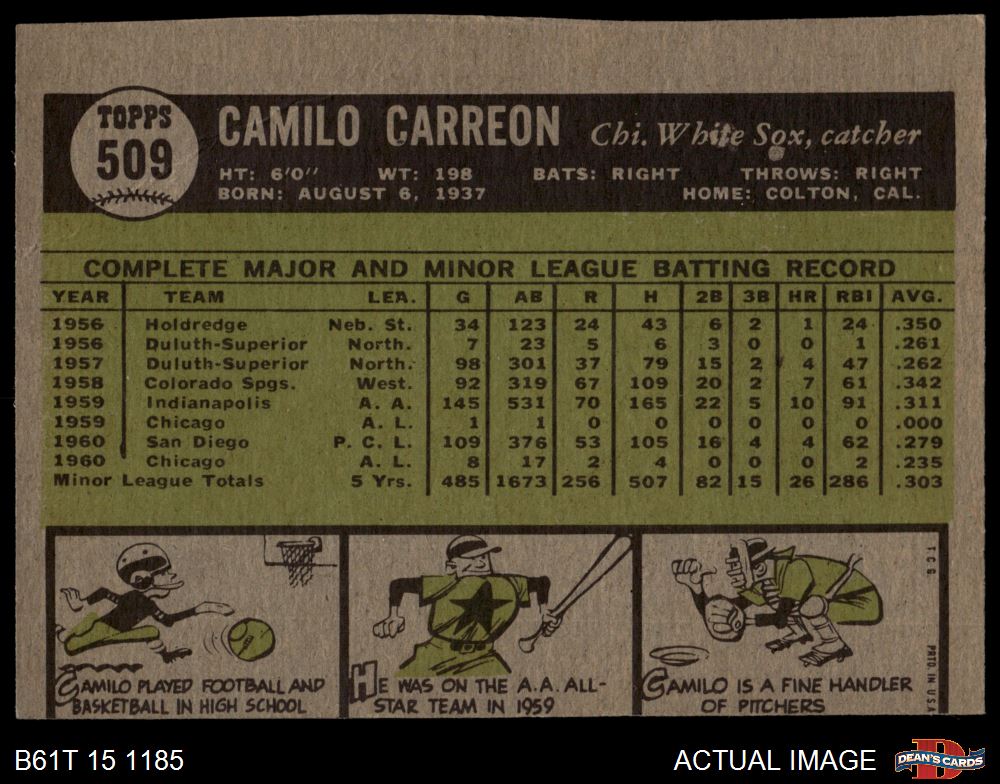 1961 Topps #509 Camilo Carreon 2 - GOOD