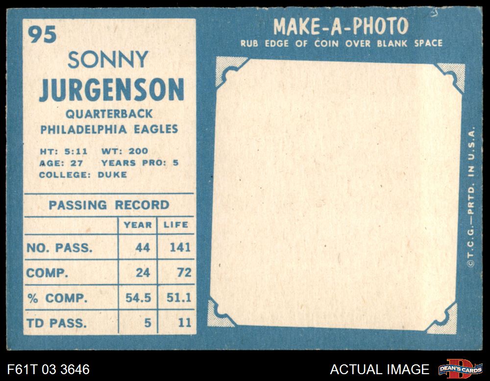 1961 Topps #95 Sonny Jurgensen