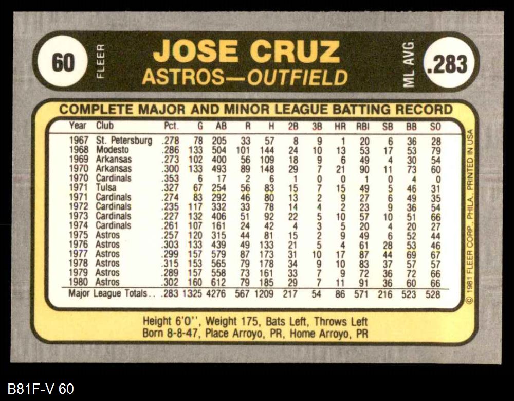 1981 Fleer #60 Jose Cruz