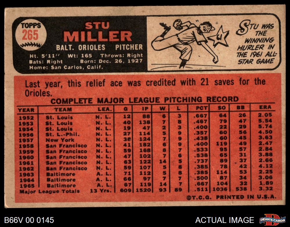 1966 Topps Venezuelan #265 Stu Miller 5 - EX