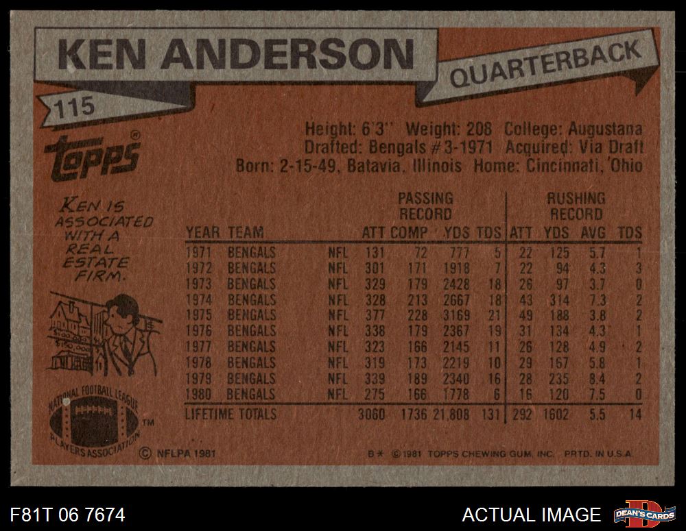 1981 Topps #115 Ken Anderson 8 - NM/MT