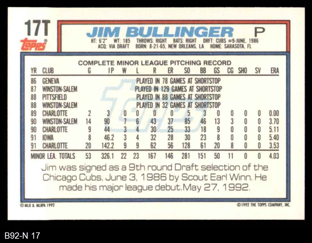 1992 Topps Traded #17 T Jim Bullinger 8 - NM/MT