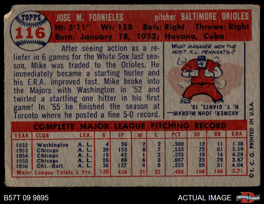 1957 Topps #116 Mike Fornieles AUTHENTIC