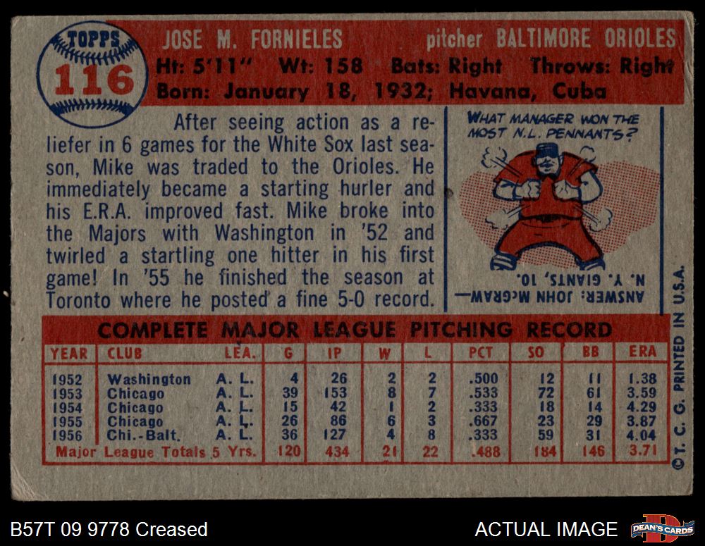 1957 Topps #116 Mike Fornieles