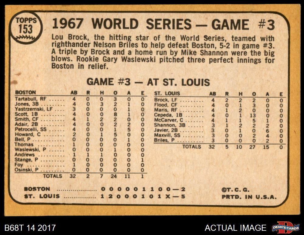 1968 Topps #153 - Nelson Briles 1967 World Series - Game #3 - Briles Cools Off Boston 7 - NM