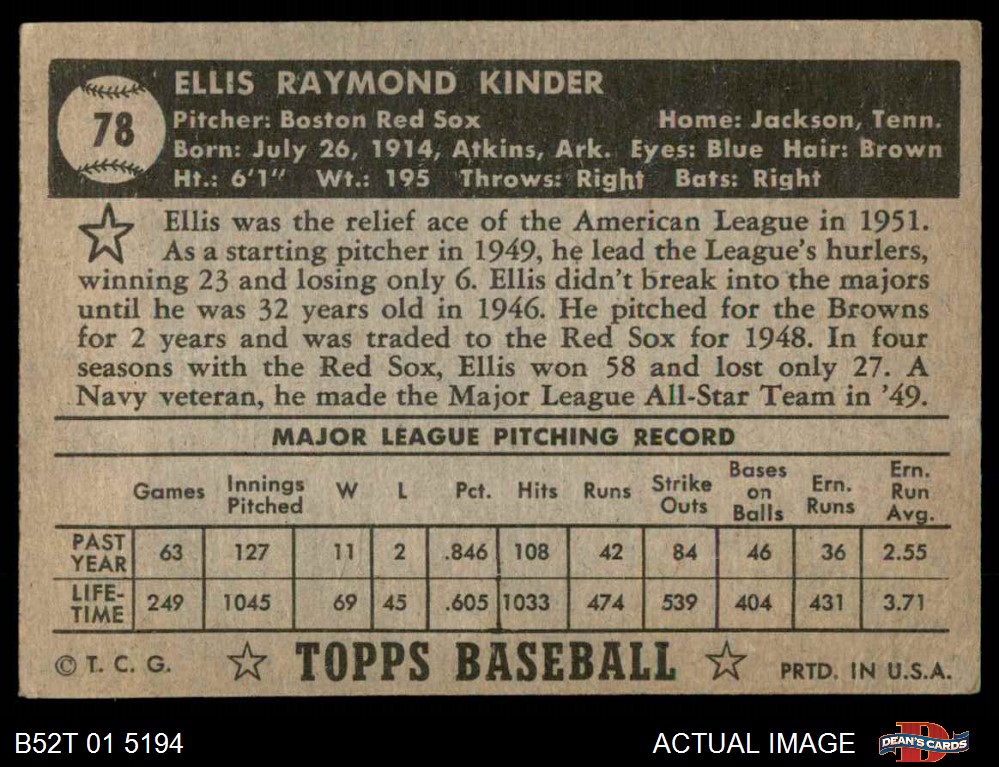 1952 Topps #78 Ellis Kinder 4 - VG/EX