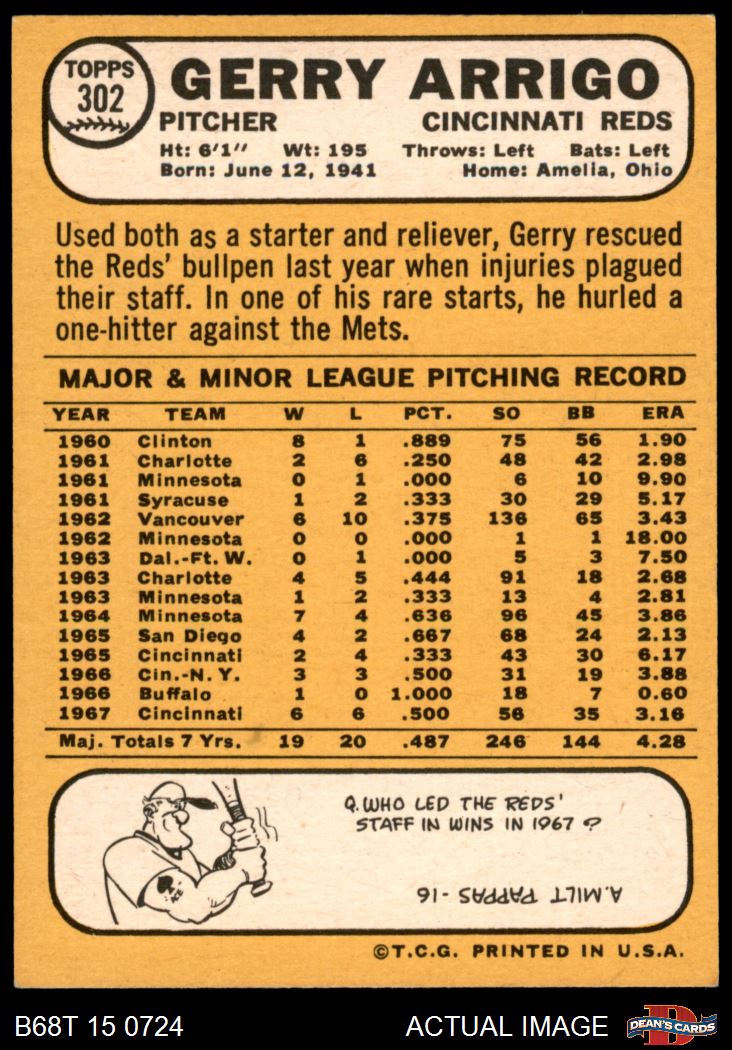 1968 Topps #302 Gerry Arrigo 7 - NM