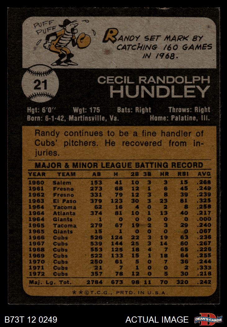 1973 Topps #21 Randy Hundley 5 - EX