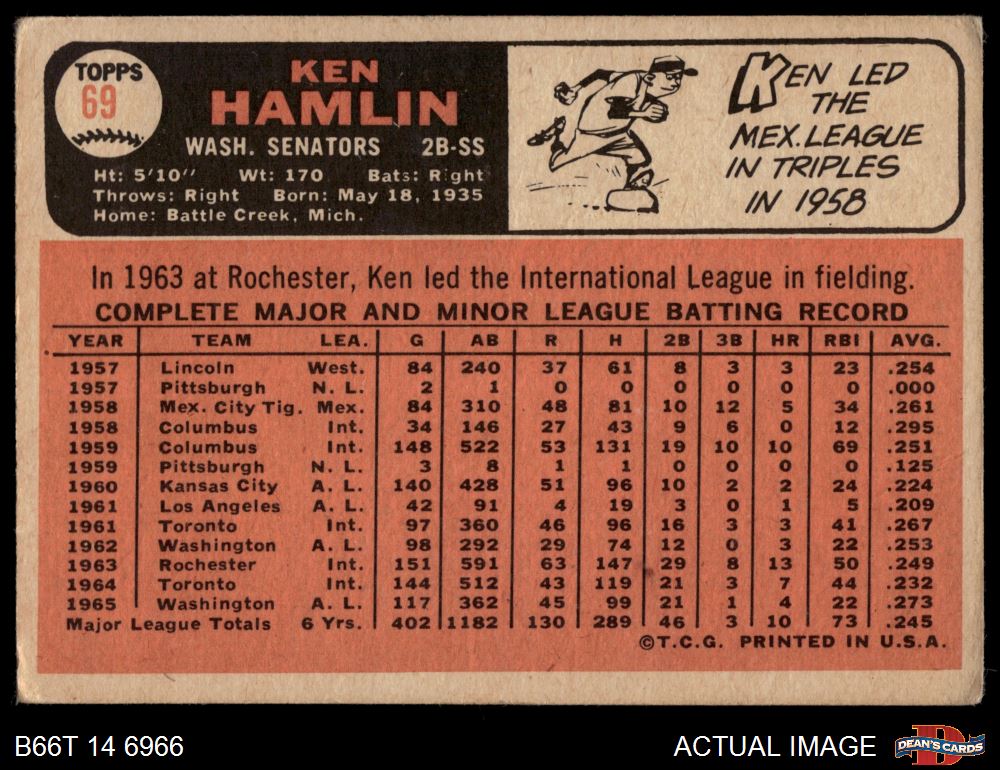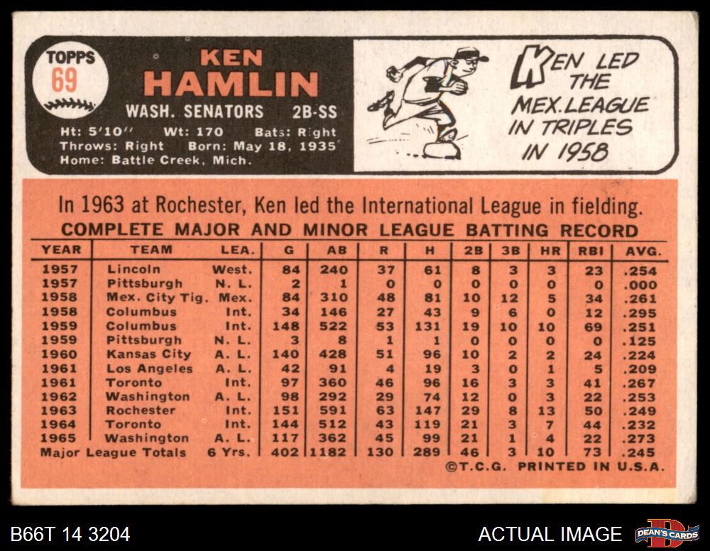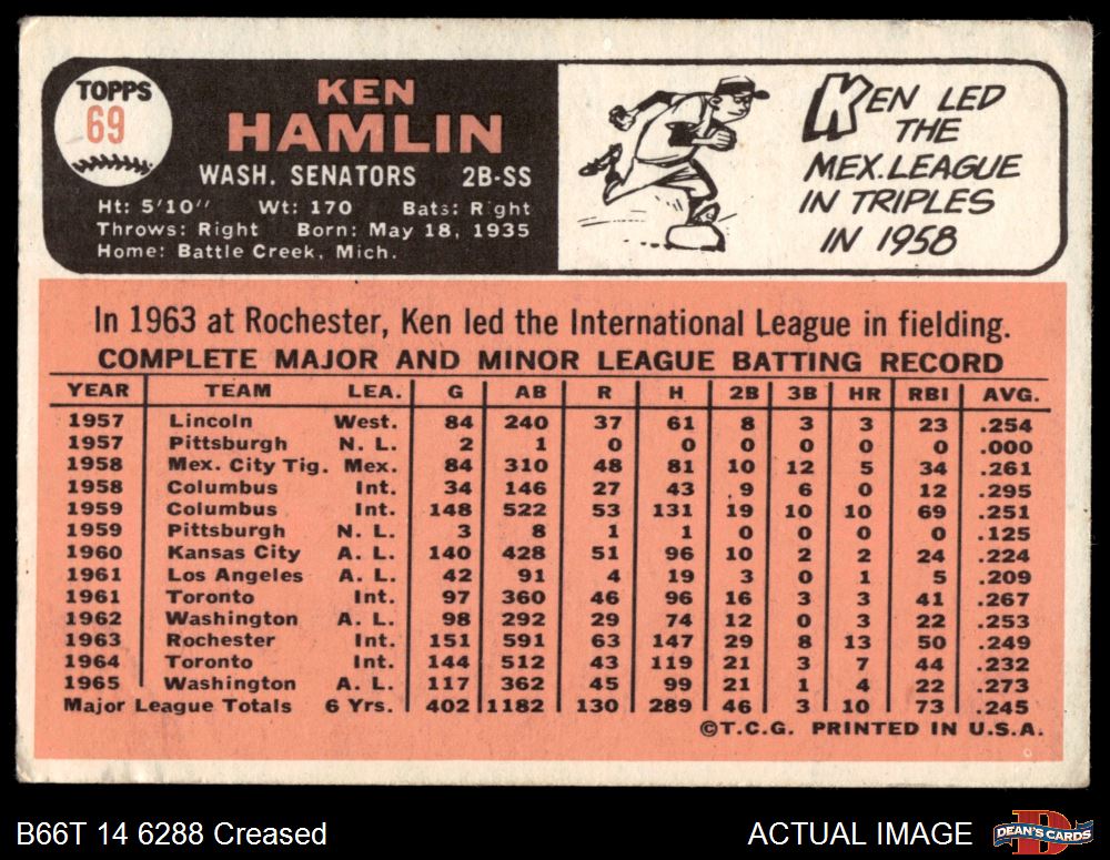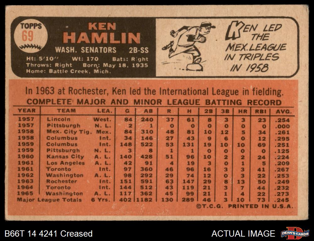 1966 Topps Baseball Cards (17,029 available)1966 Topps Senators (1,190 available)