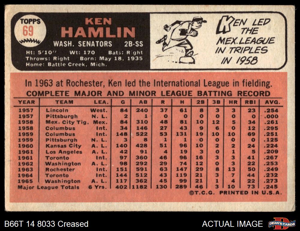 1966 Topps #69 Ken Hamlin 2 - GOOD
