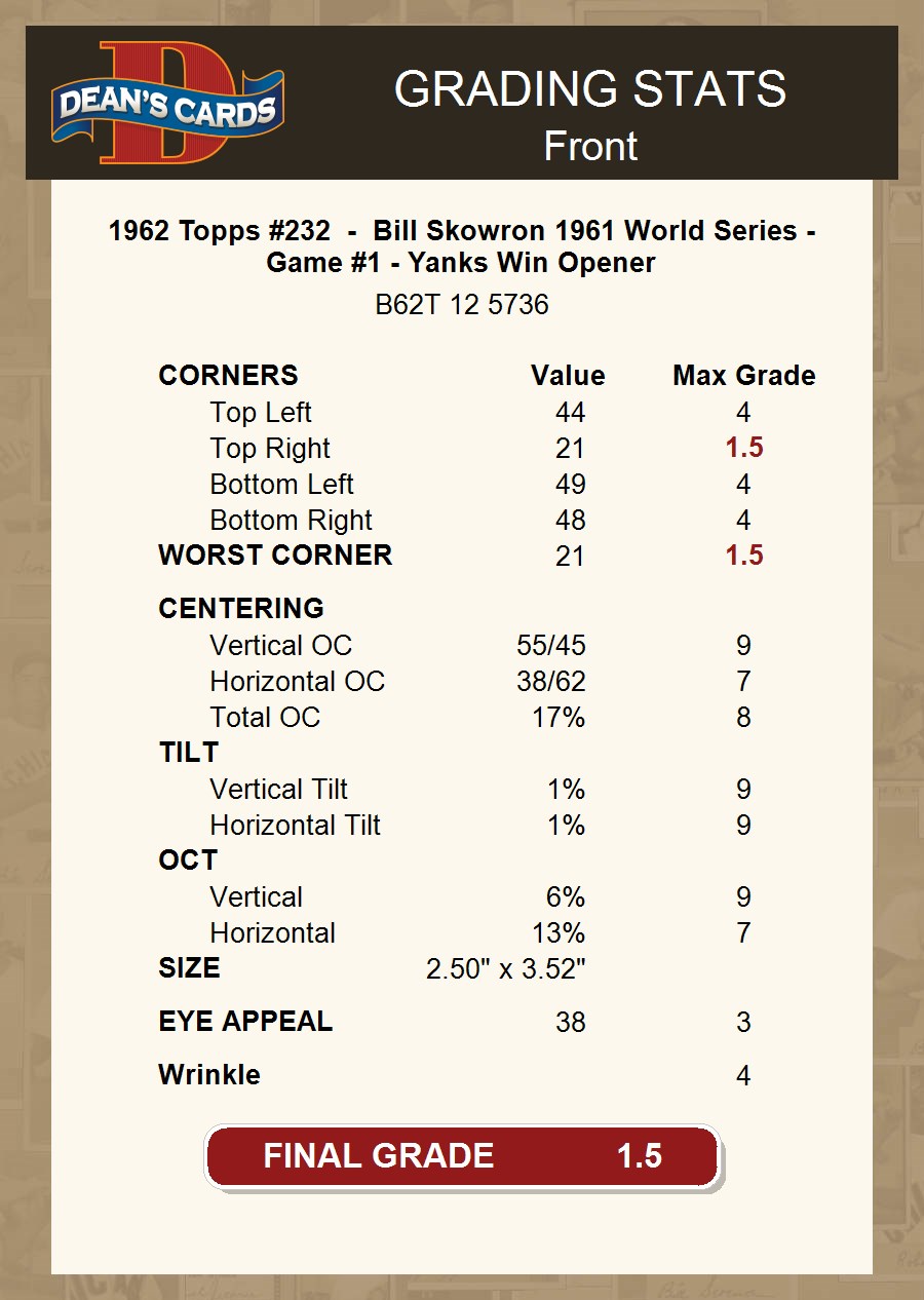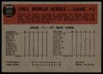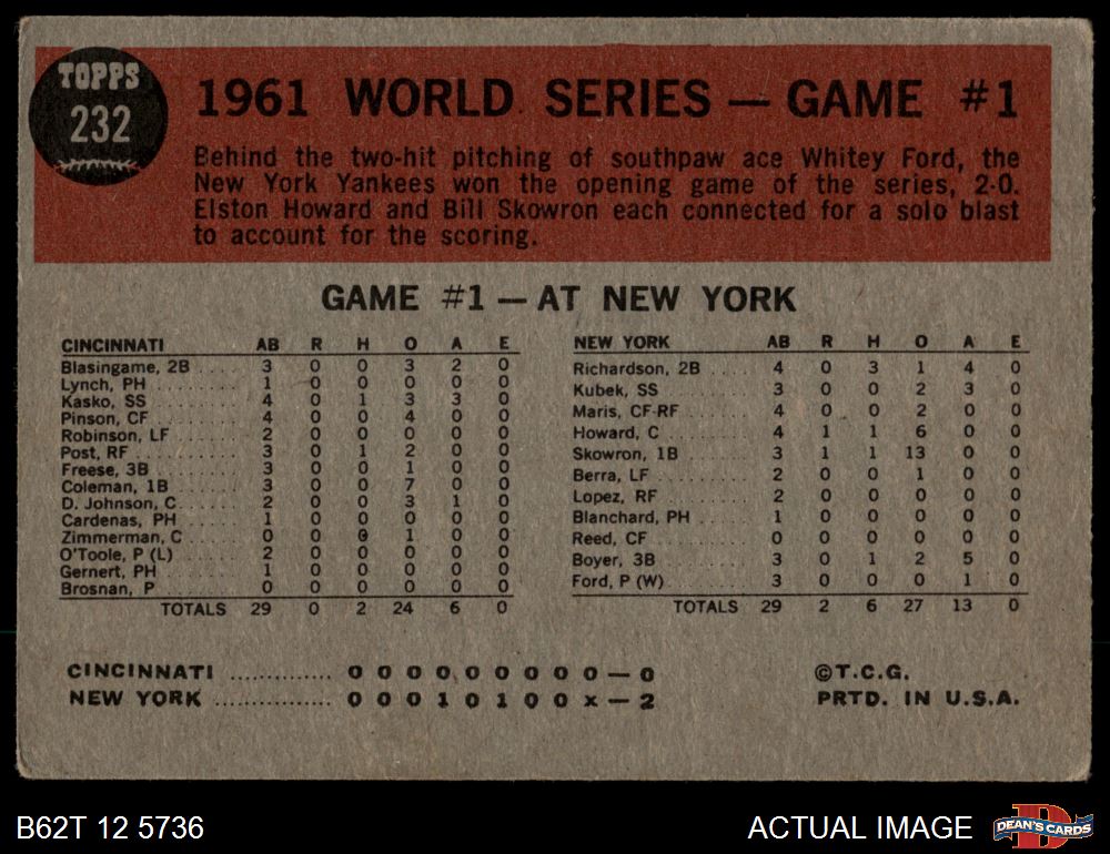 1962 Topps #232 - Bill Skowron 1961 World Series - Game #1 - Yanks Win Opener 1.5 - FAIR