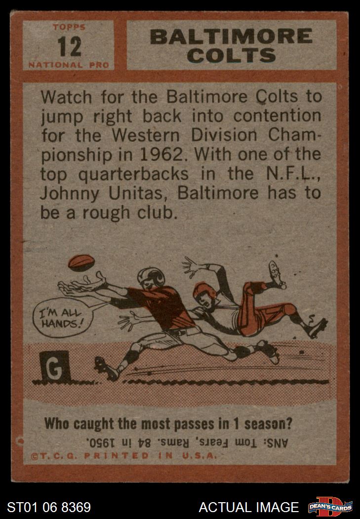 1962 Topps #12 Colts Team 3 - VG