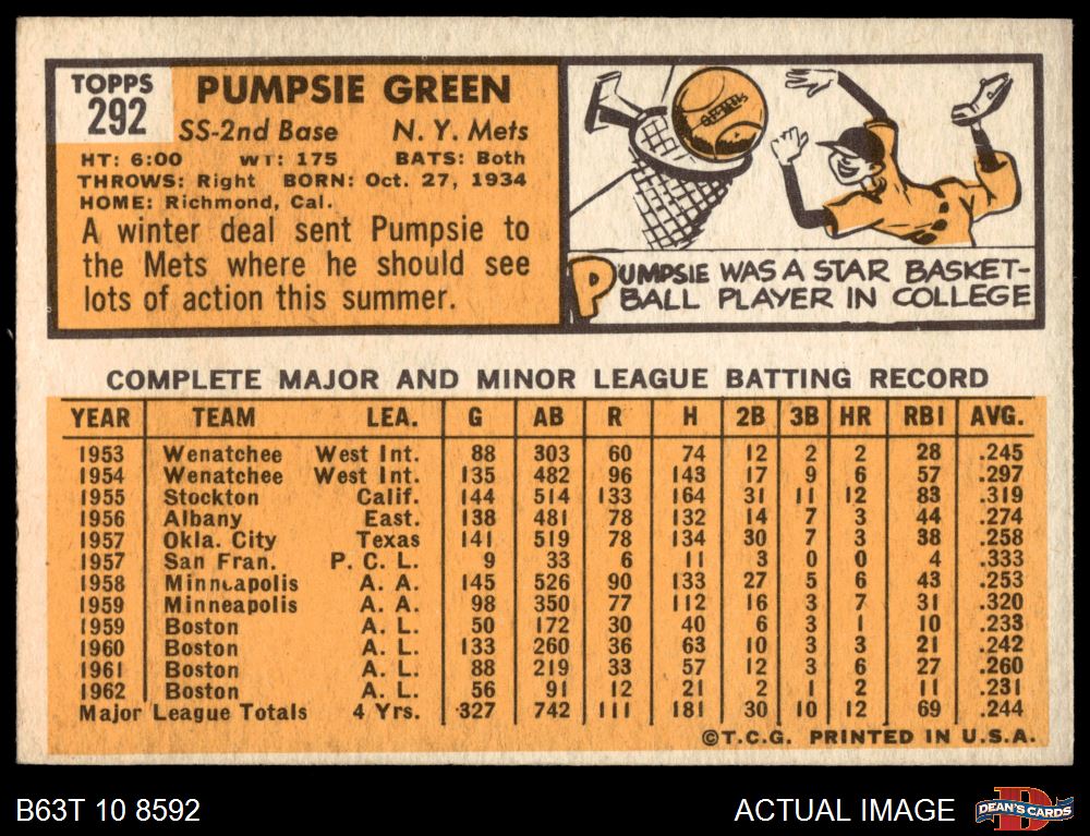 1963 Topps #292 Pumpsie Green
