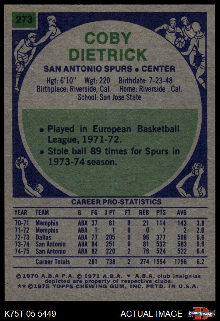 1975 Topps #273 Coby Dietrick 5 - EX