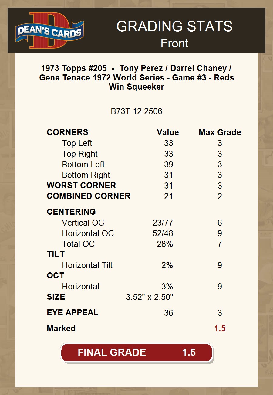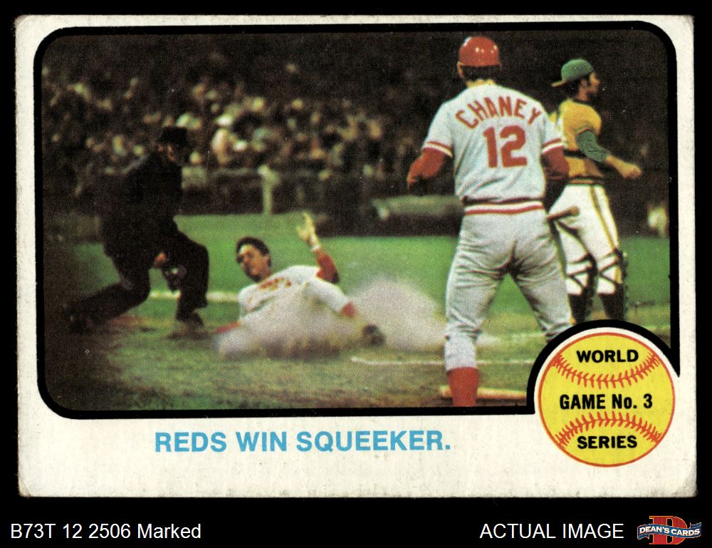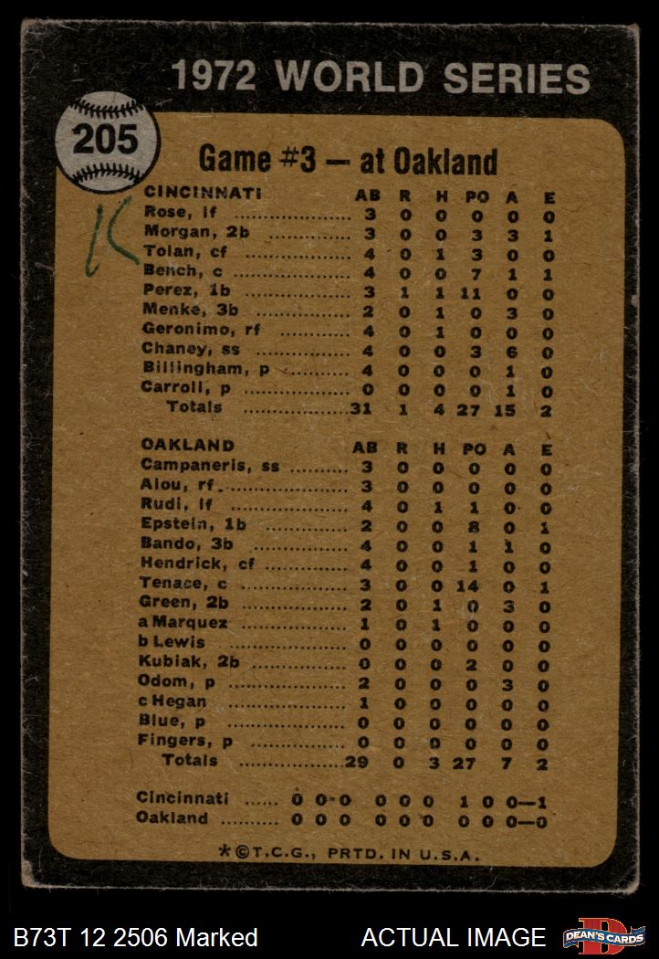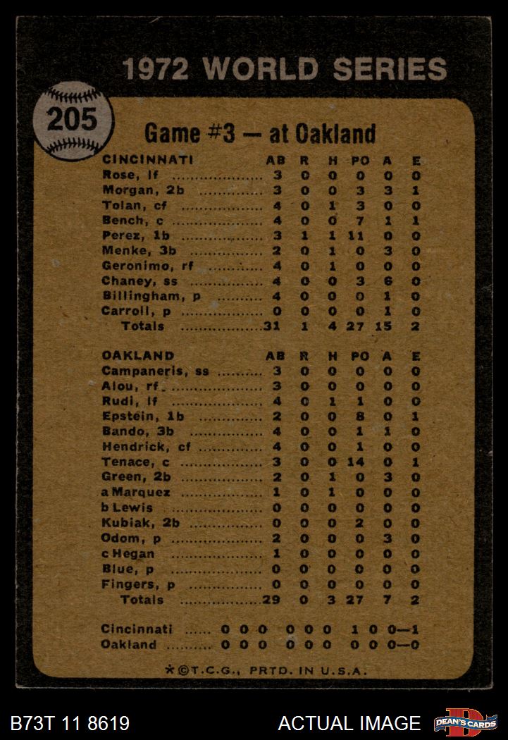 1973 Topps #205 - Tony Perez / Darrel Chaney / Gene Tenace 1972 World Series - Game #3 - Reds Win Squeeker 1.5 - FAIR