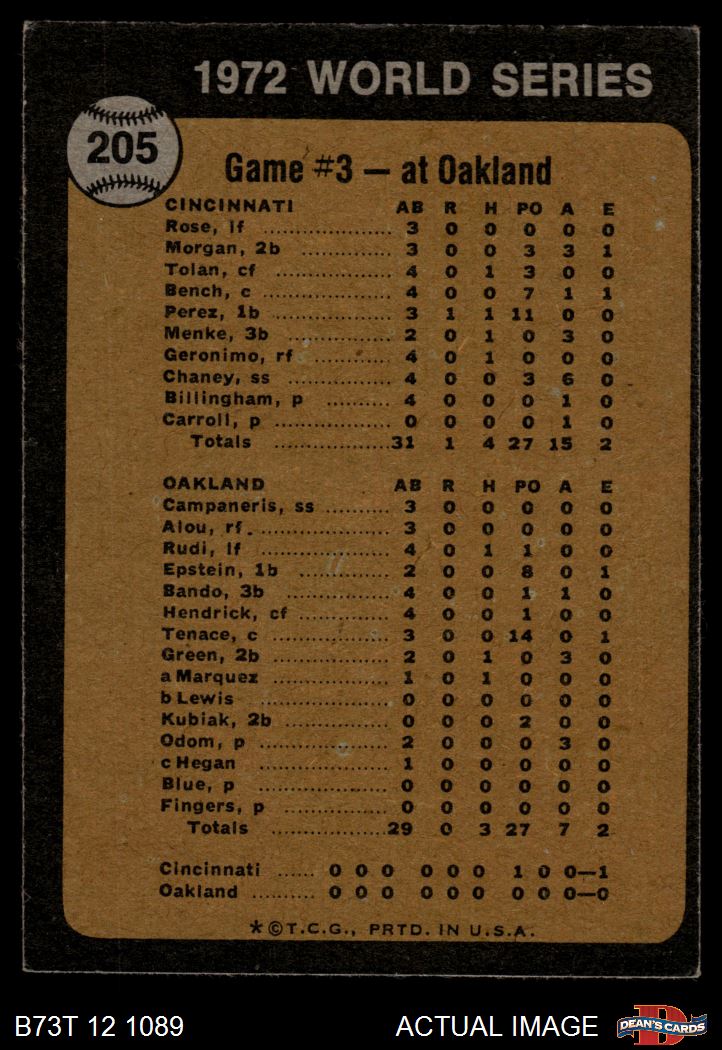 1973 Topps #205 1972 World Series - Game #3 - Reds Win Squeeker