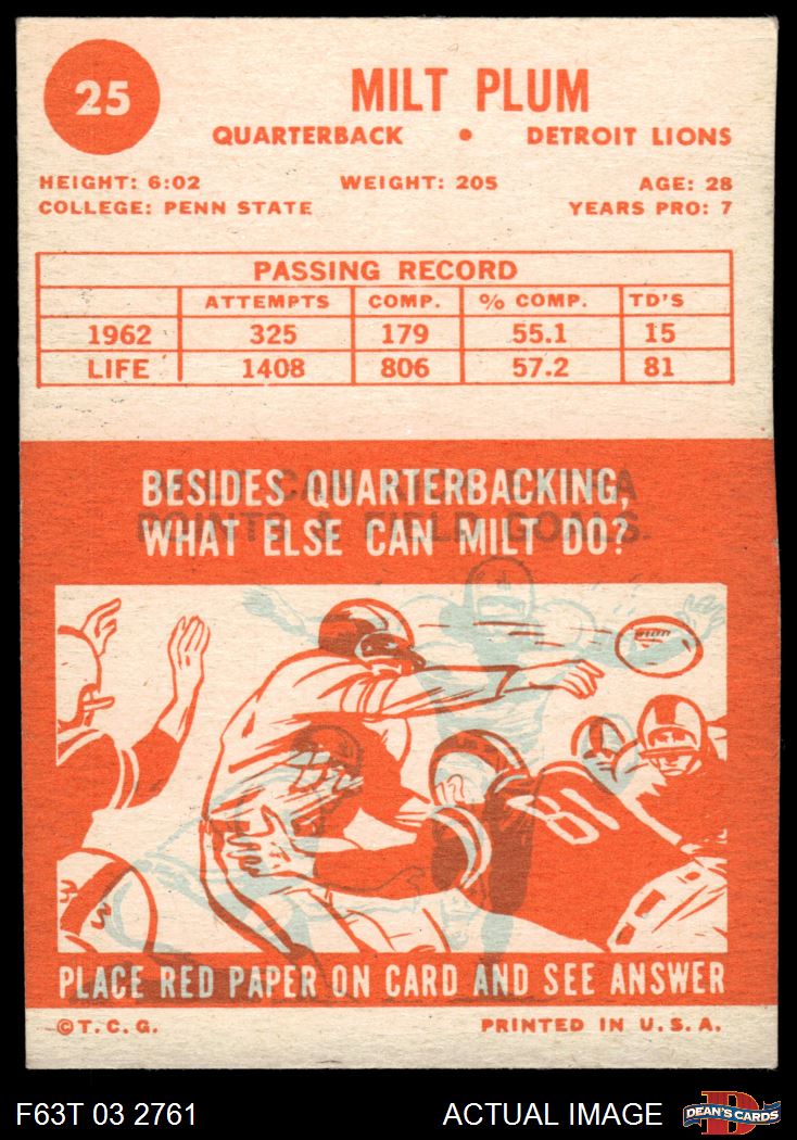 1963 Topps #25 Milt Plum 4 - VG/EX