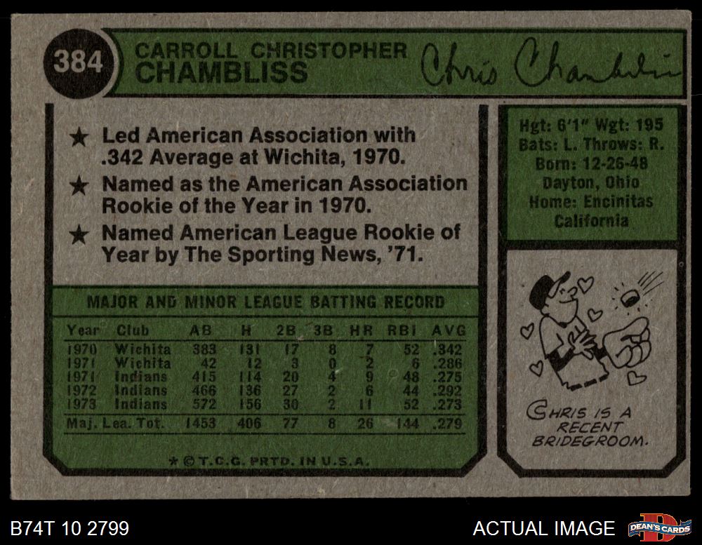 1974 Topps #384 Chris Chambliss 4 - VG/EX