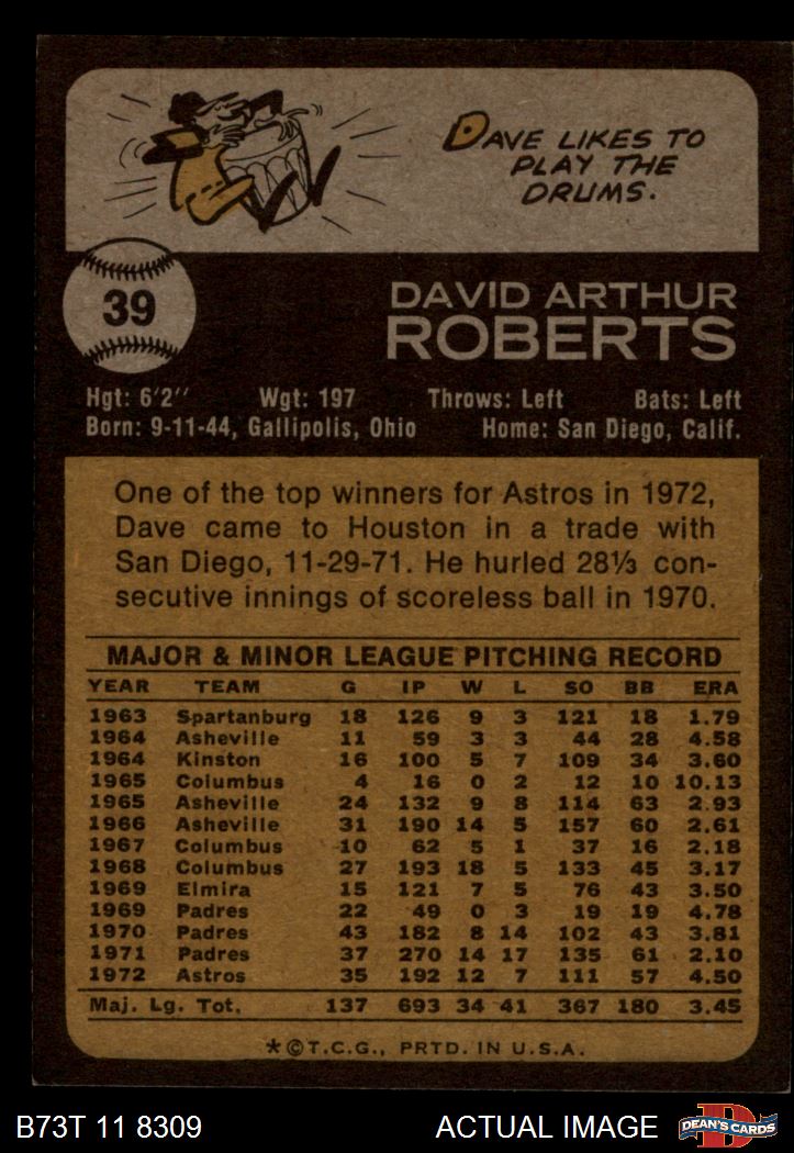 1973 Topps #39 Dave Roberts 5 - EX