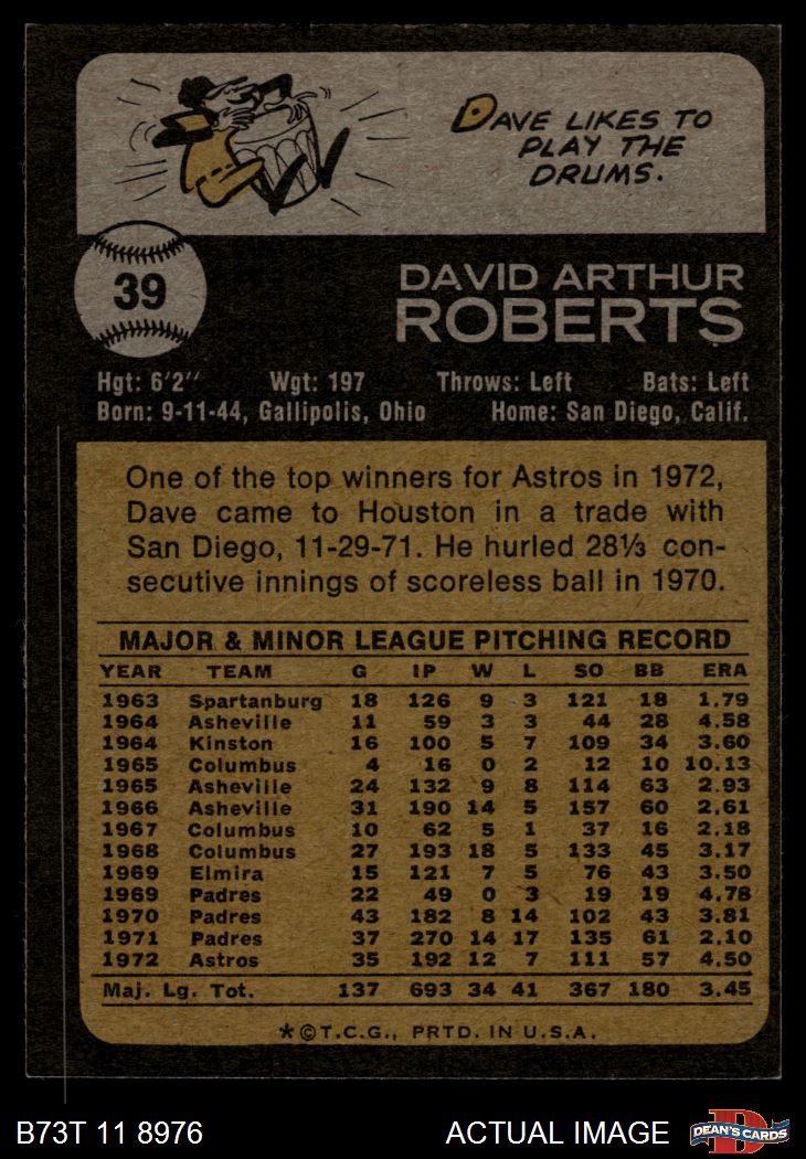 1973 Topps #39 Dave Roberts 6 - EX/MT