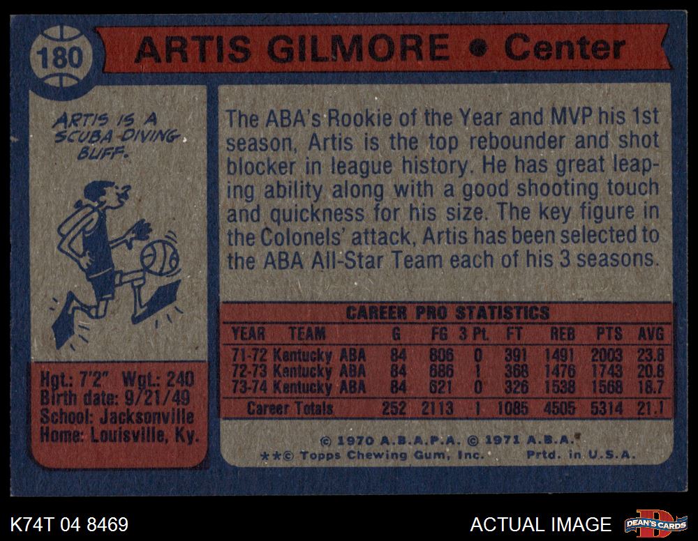 1974 Topps #180 Artis Gilmore 5 - EX