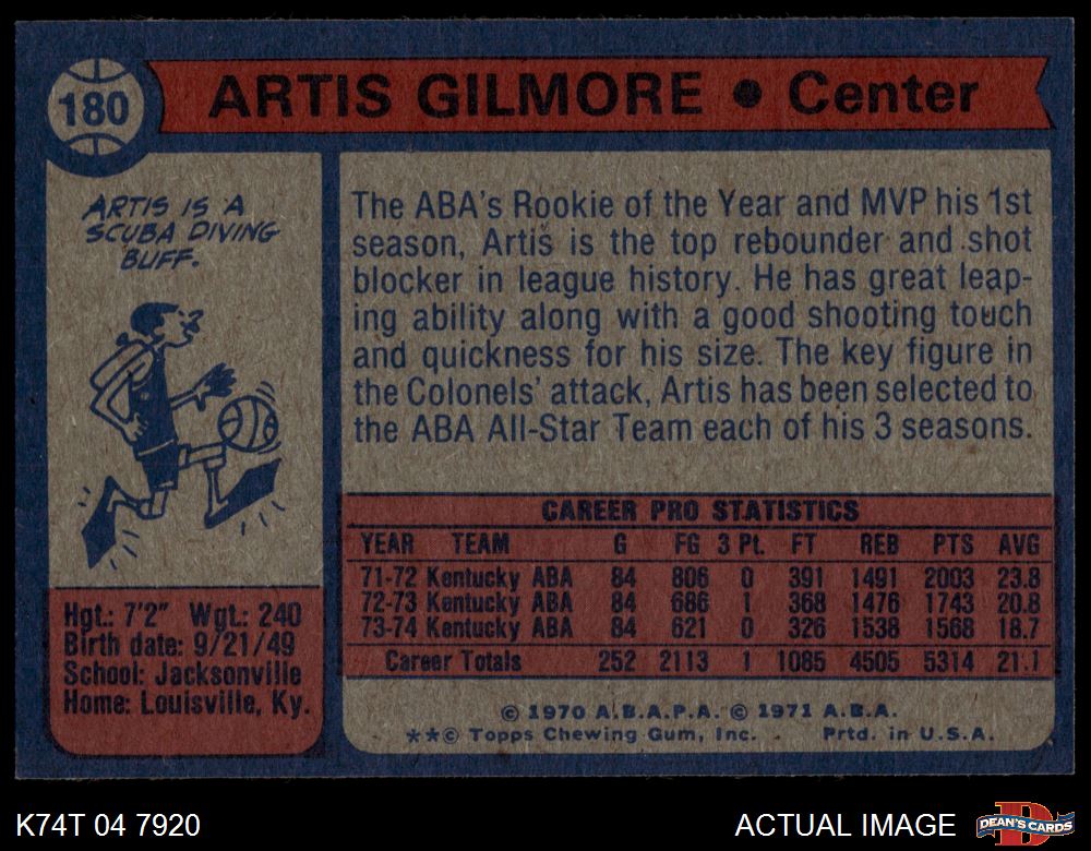 1974 Topps #180 Artis Gilmore 7 - NM