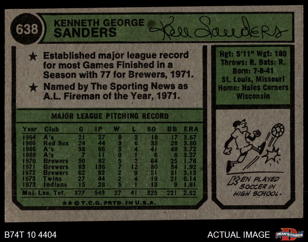 1974 Topps #638 Ken Sanders