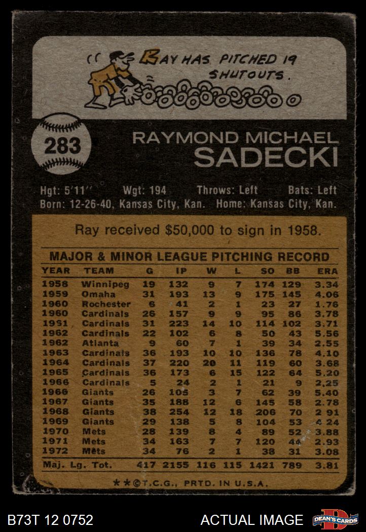 1973 Topps #283 Ray Sadecki 1 - POOR