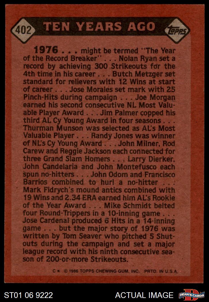 1986 Topps #402 Turn Back The Clock