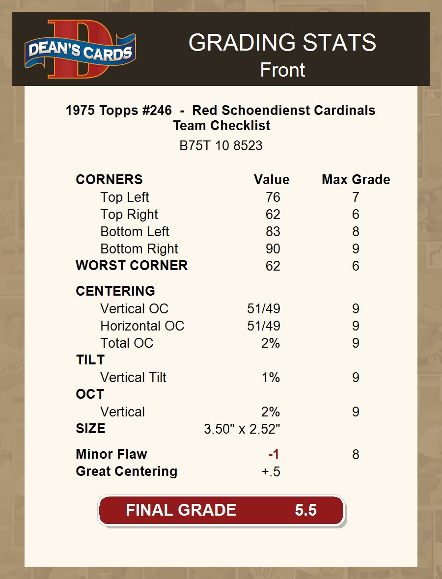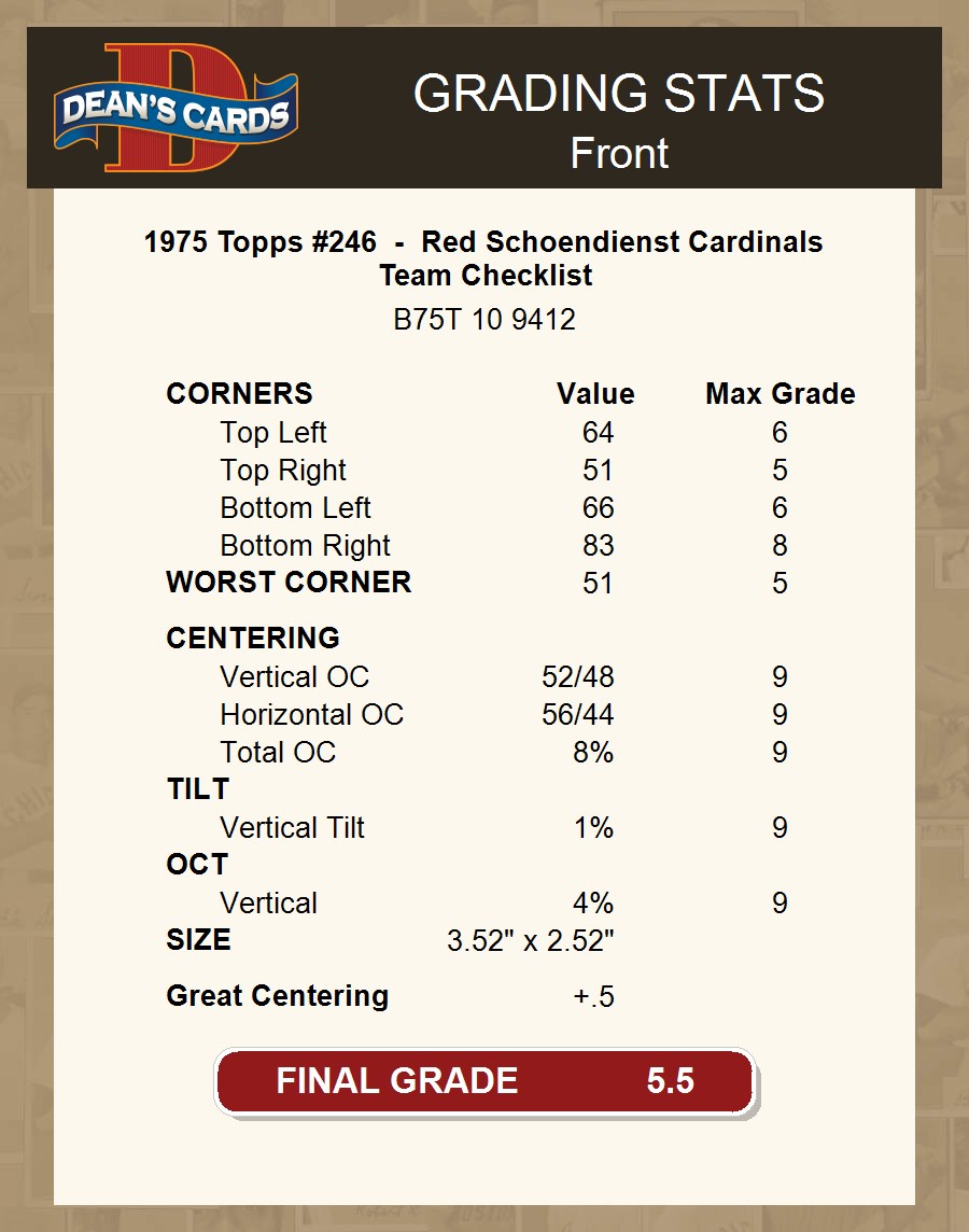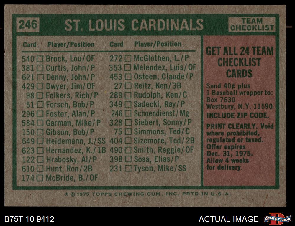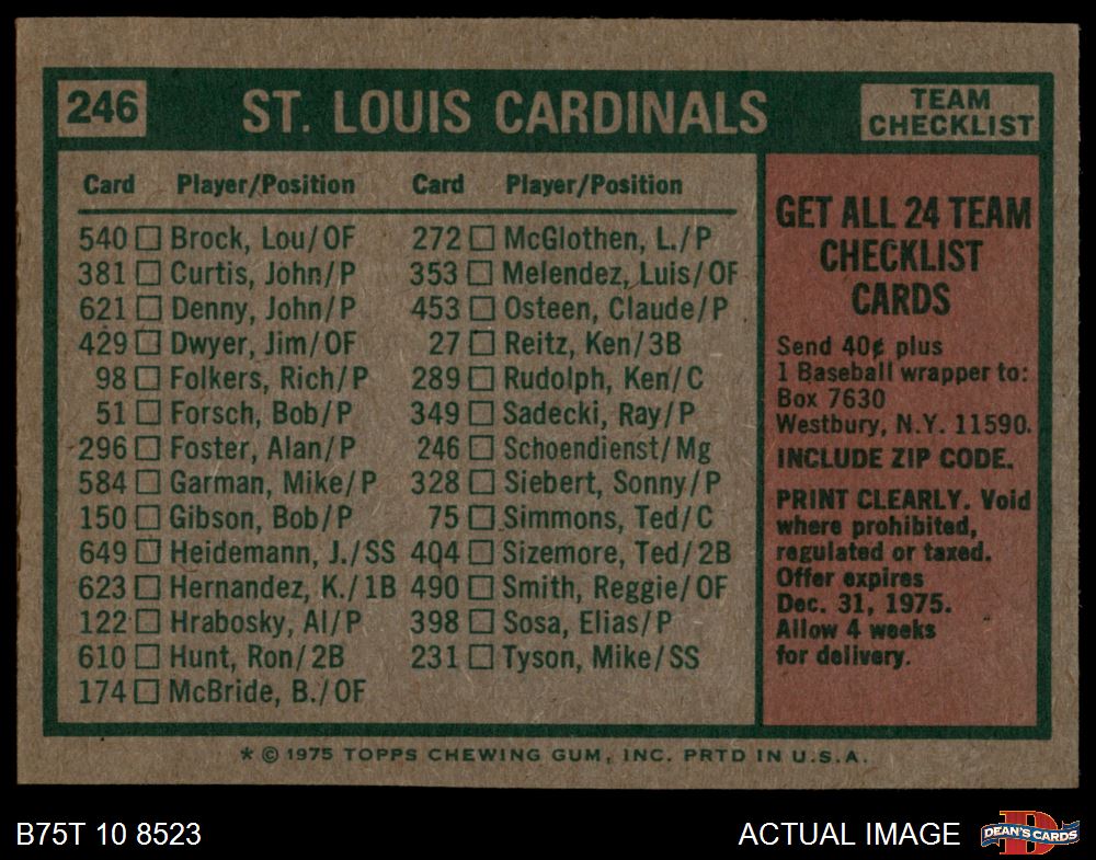 1975 Topps #246 - Red Schoendienst Cardinals Team Checklist 5.5 - EX+