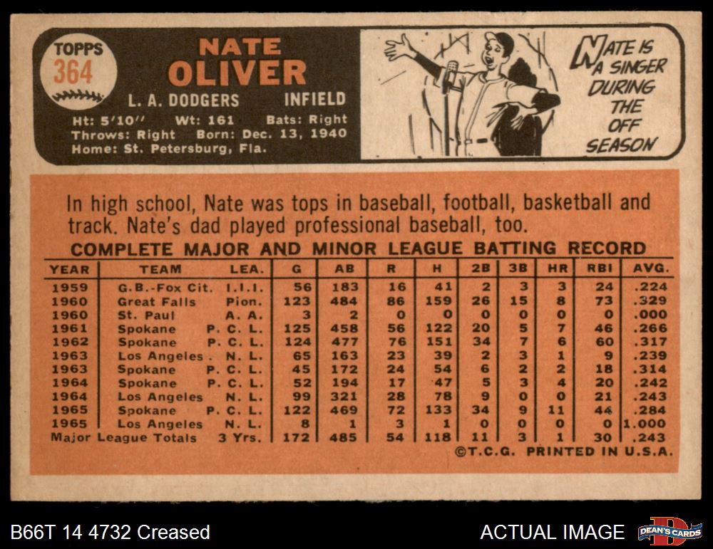 1966 Topps #364 Nate Oliver 2 - GOOD
