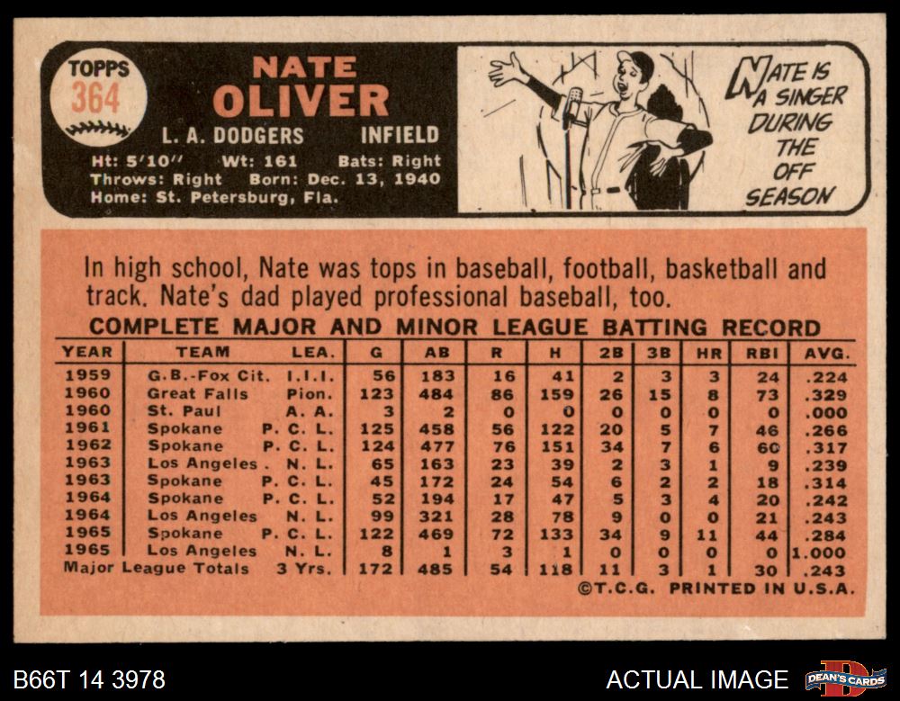 1966 Topps #364 Nate Oliver 7 - NM