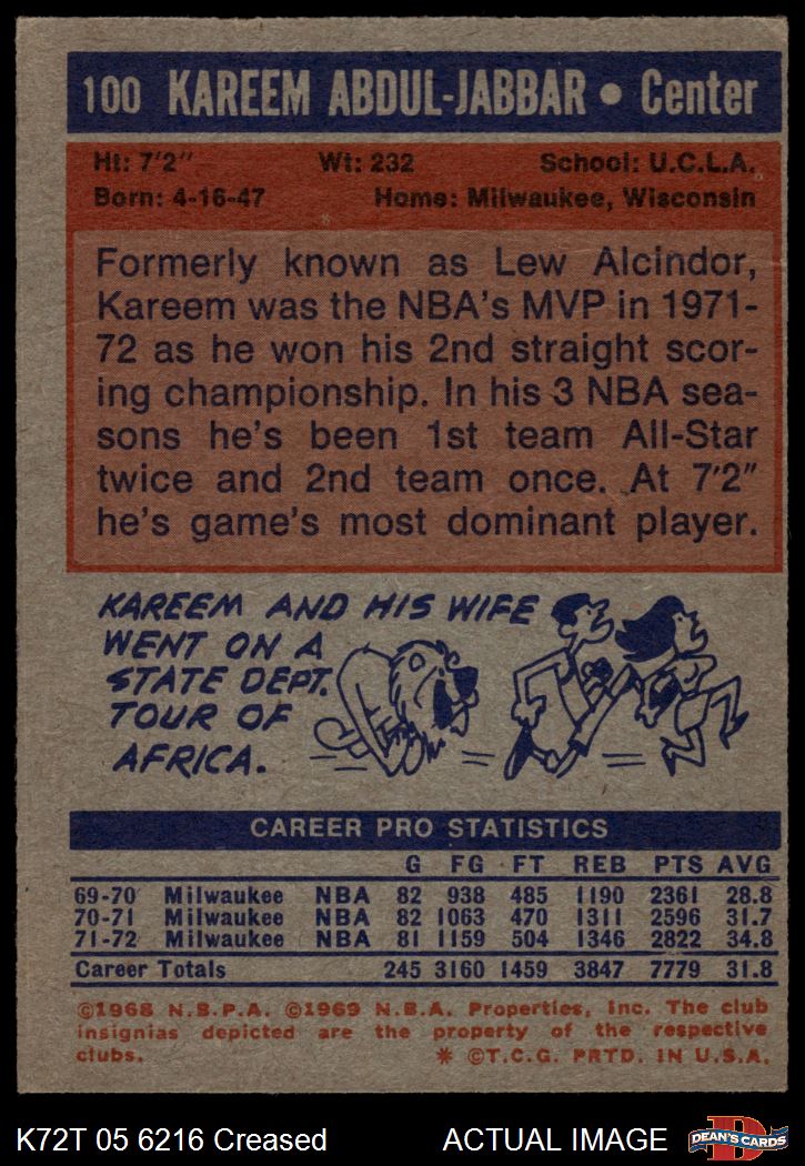 1972 Topps #100 Kareem Abdul-Jabbar 3 - VG