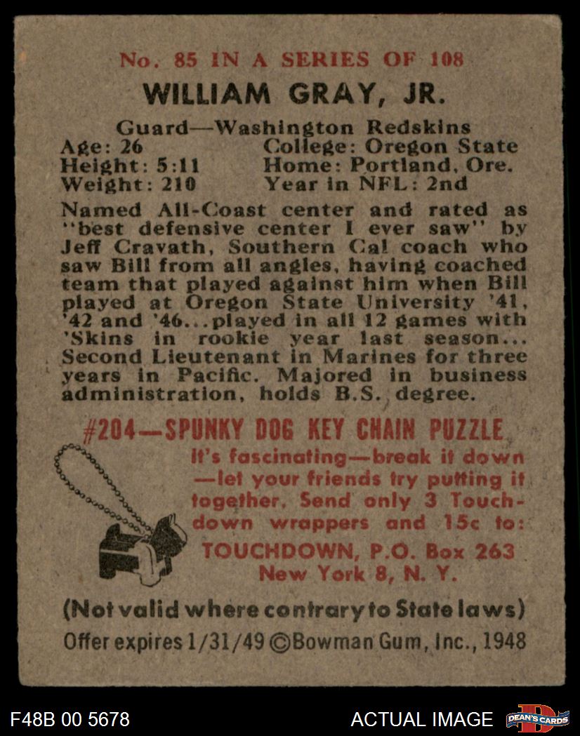 1948 Bowman #85 William Gray Jr. 4 - VG/EX