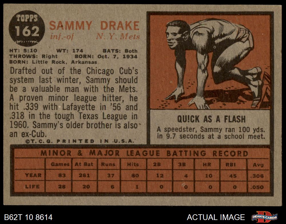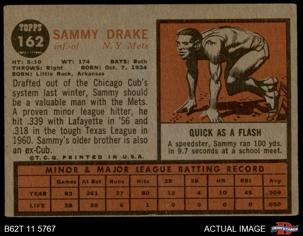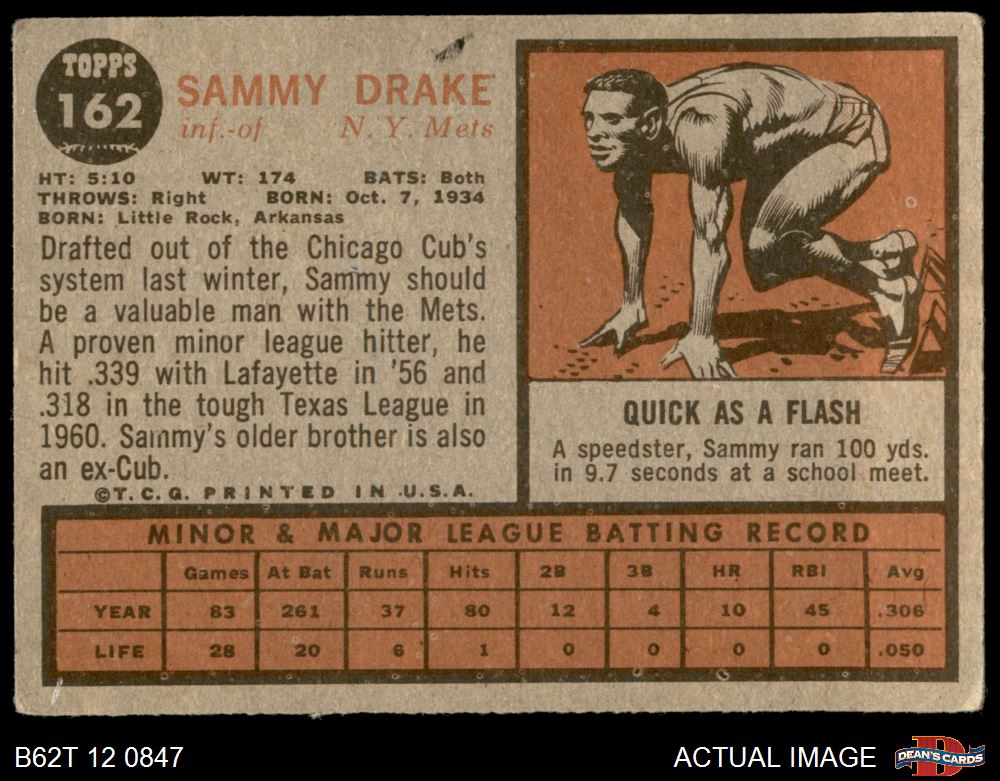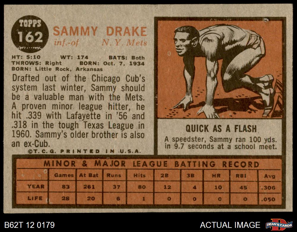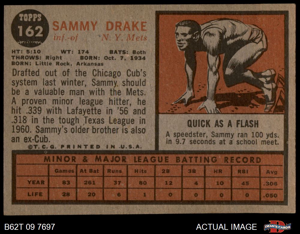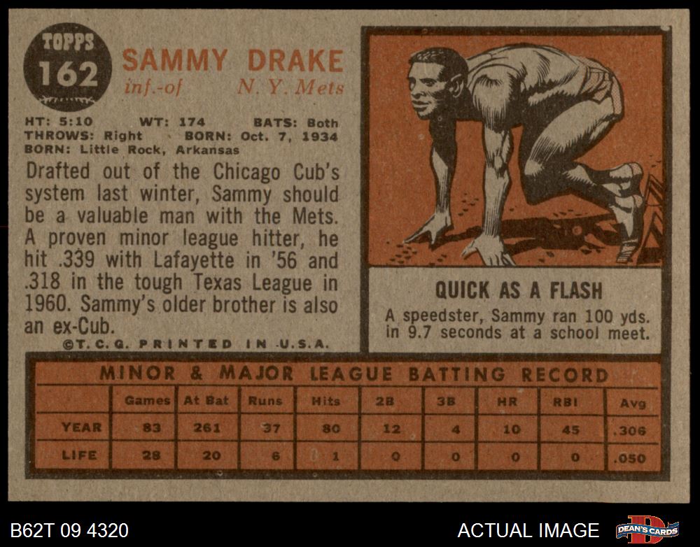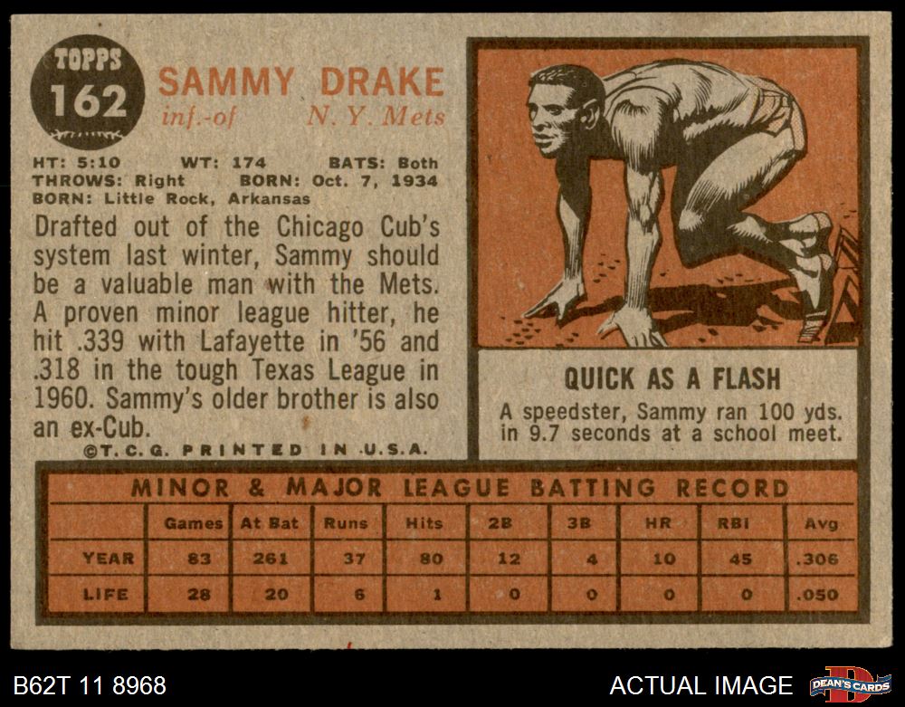 1962 Topps #162 NRM Sammy Drake