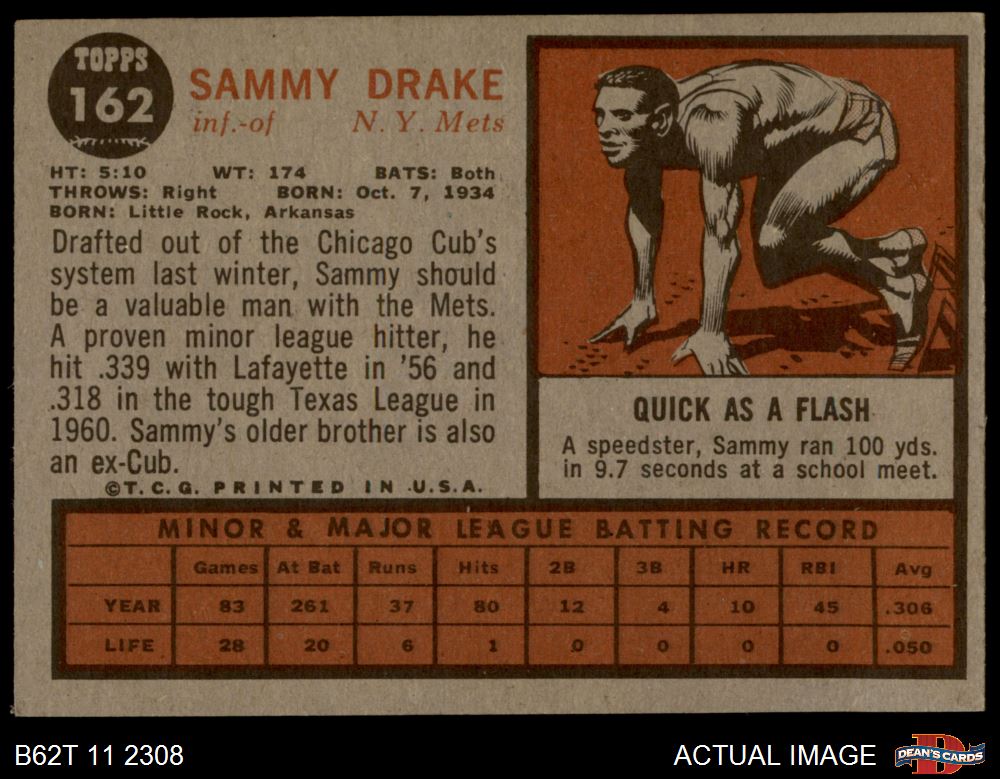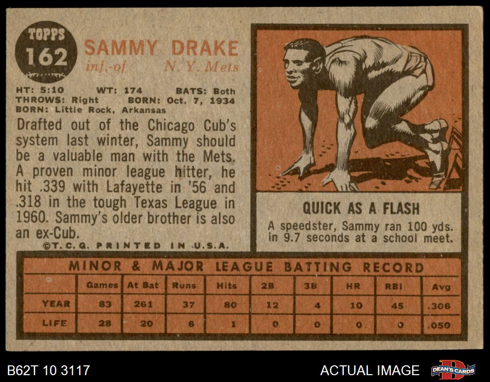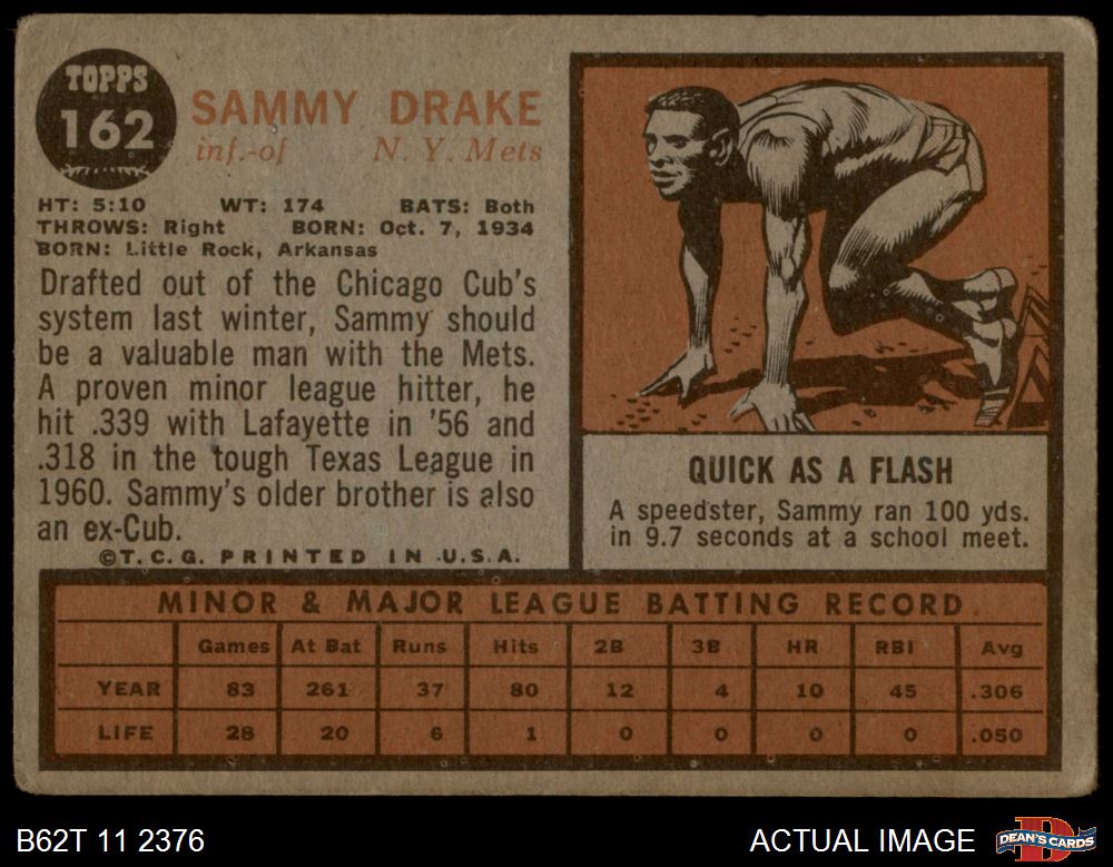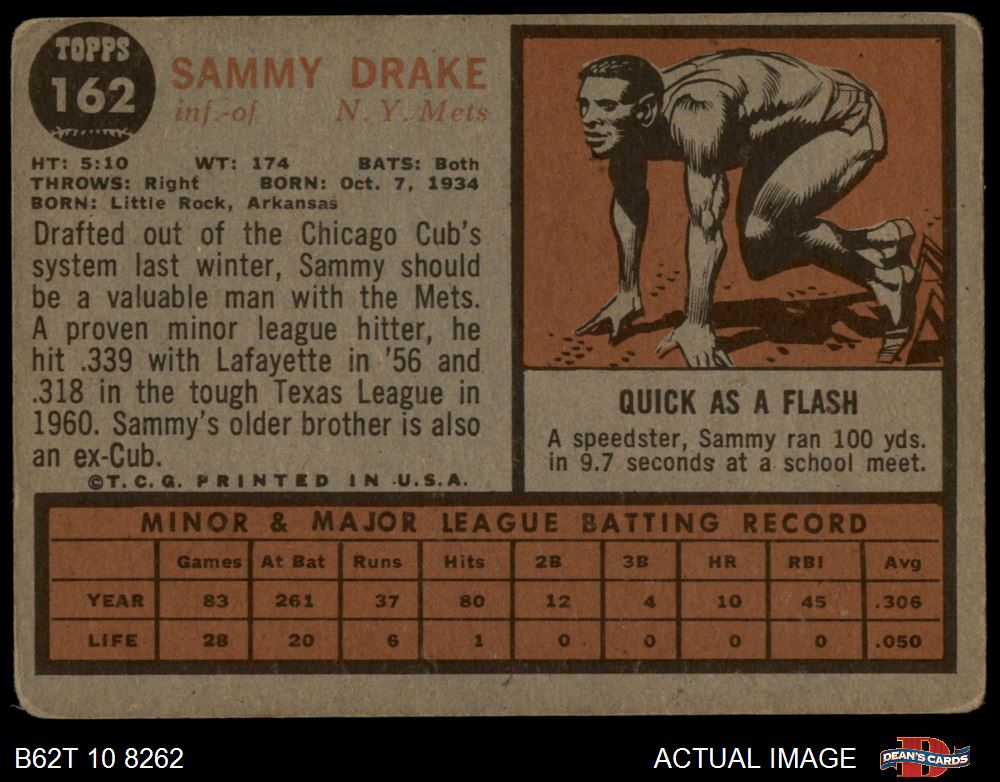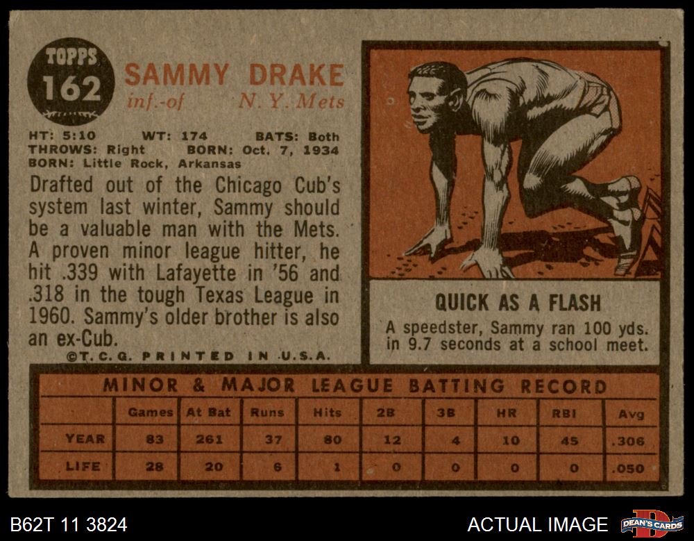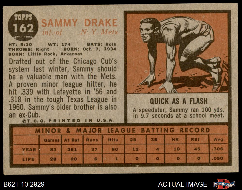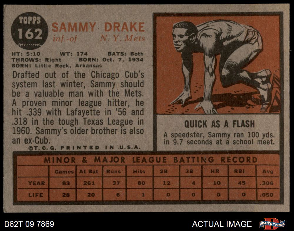 1962 Topps #162 NRM Sammy Drake