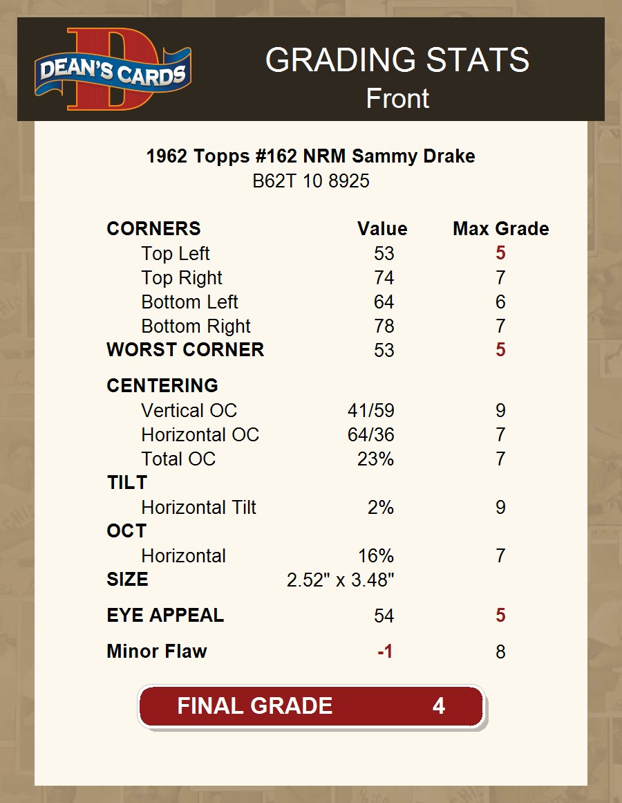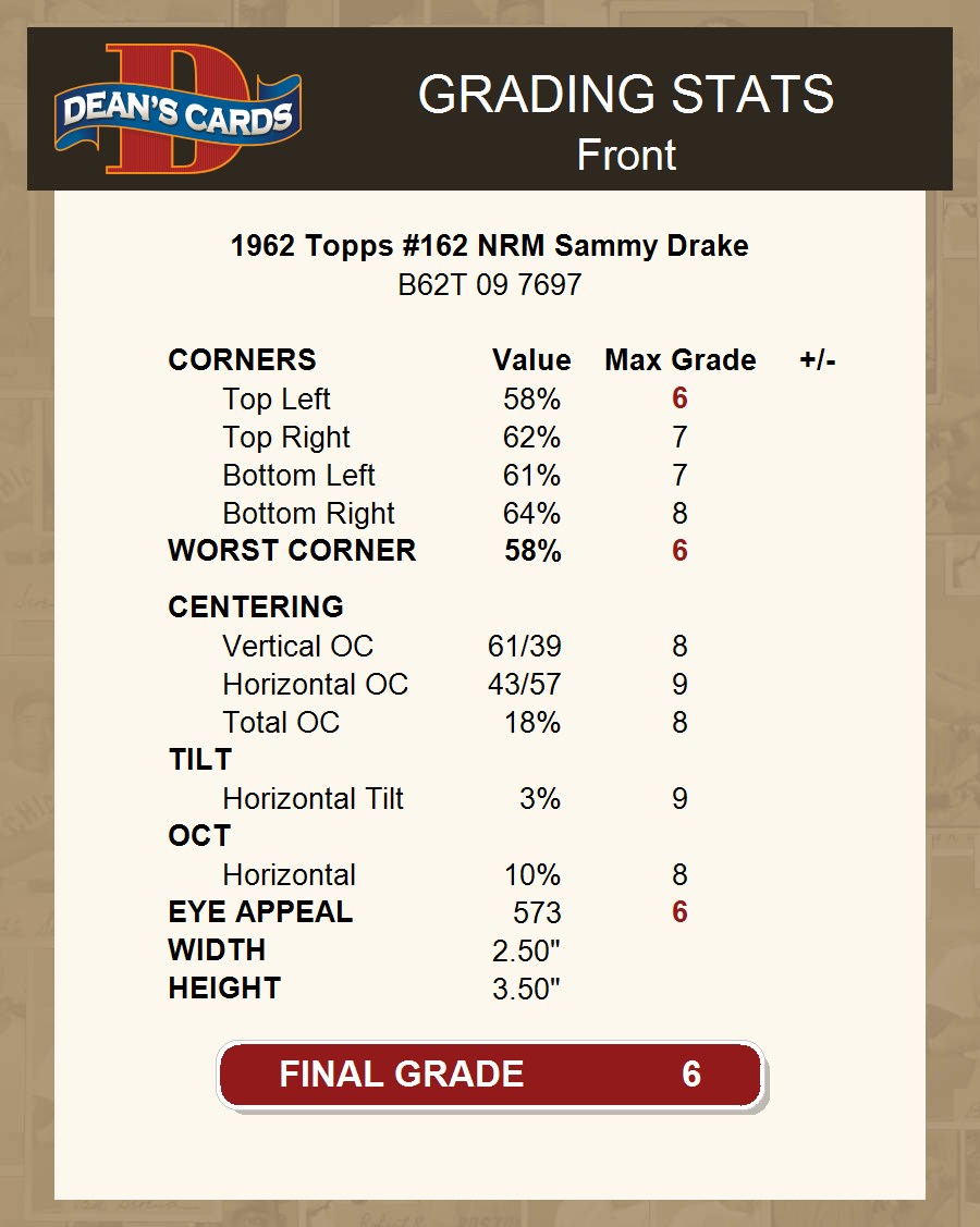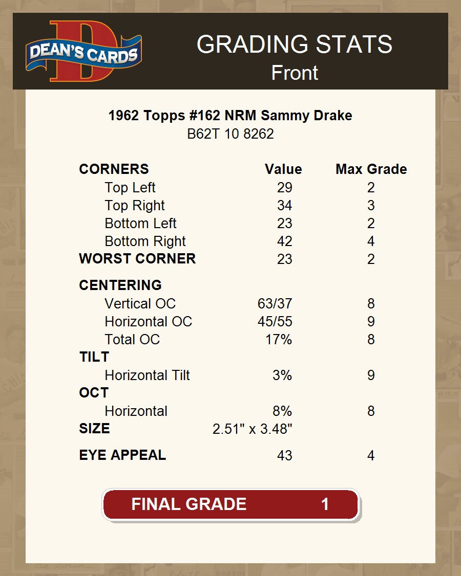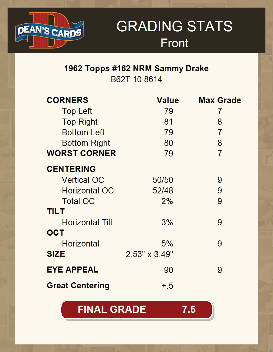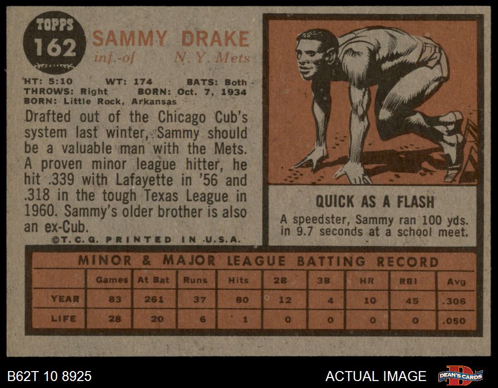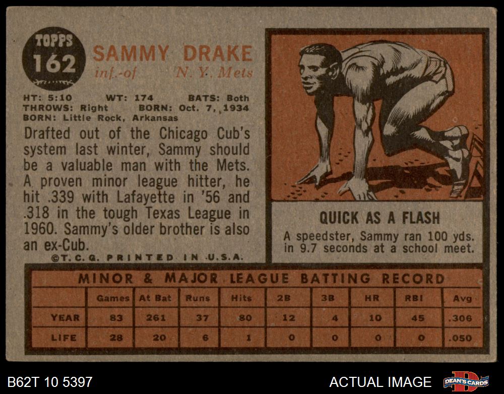 1962 Topps #162 NRM Sammy Drake