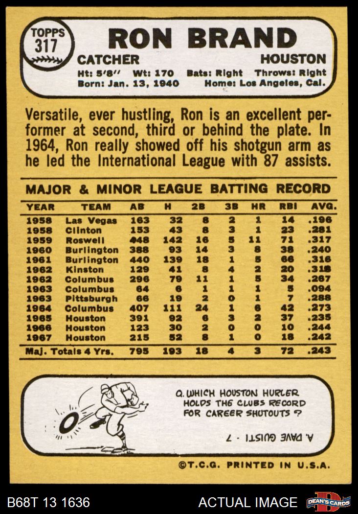 1968 Topps Baseball Cards (13,151 available)1968 Topps Astros (841 available)