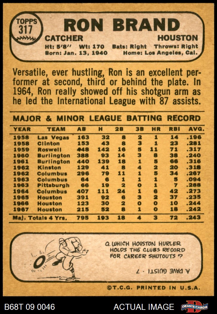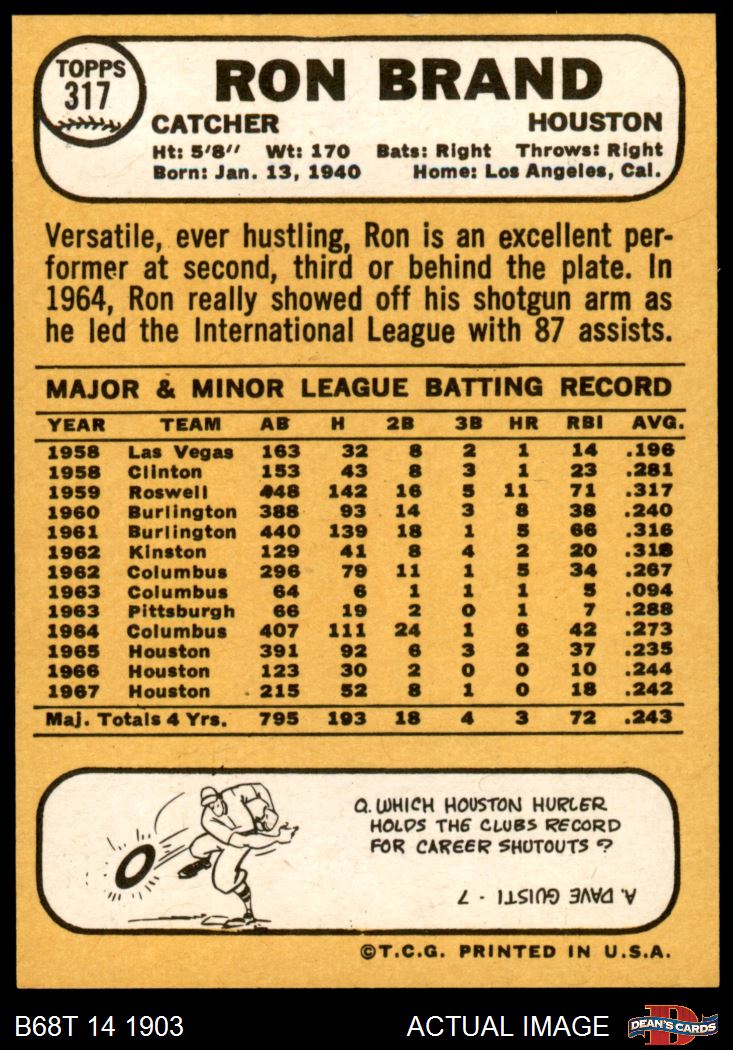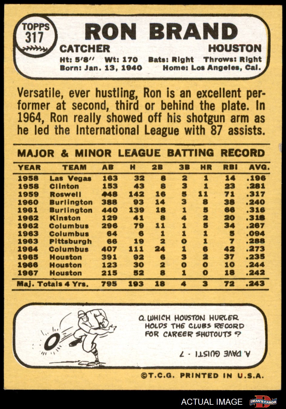 1968 Topps #317 Ron Brand 8 - NM/MT