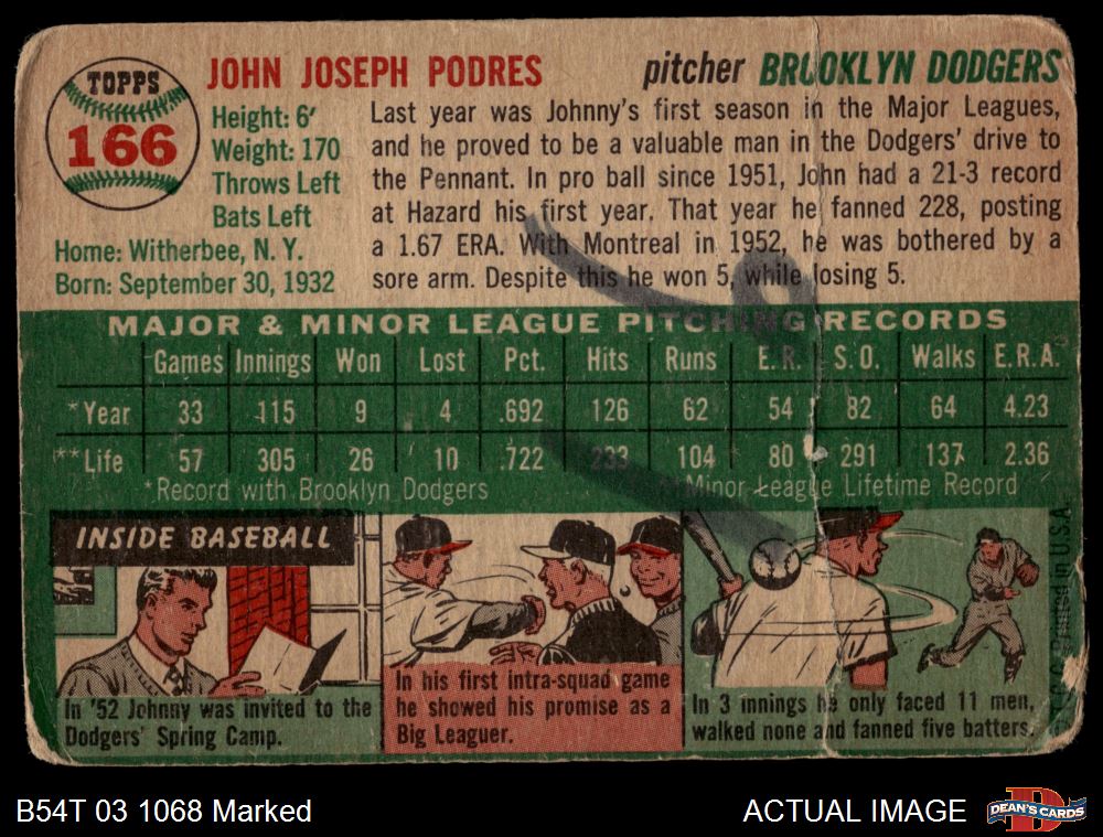 1954 Topps #166 Johnny Podres Front Thumbnail