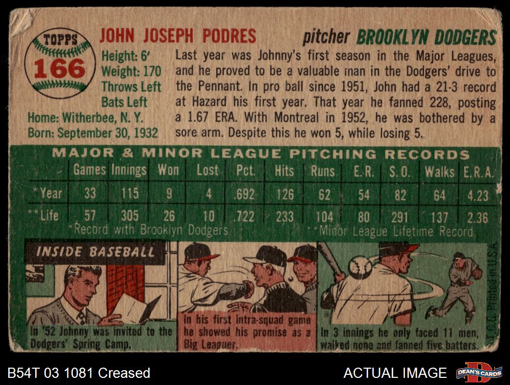 1954 Topps Baseball Cards (2,865 available)1954 Topps Dodgers (212 available)