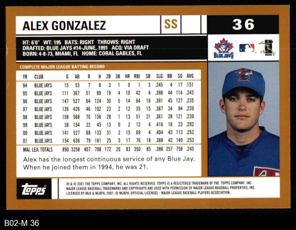 2002 Topps #36 Alex Gonzalez 8 - NM/MT