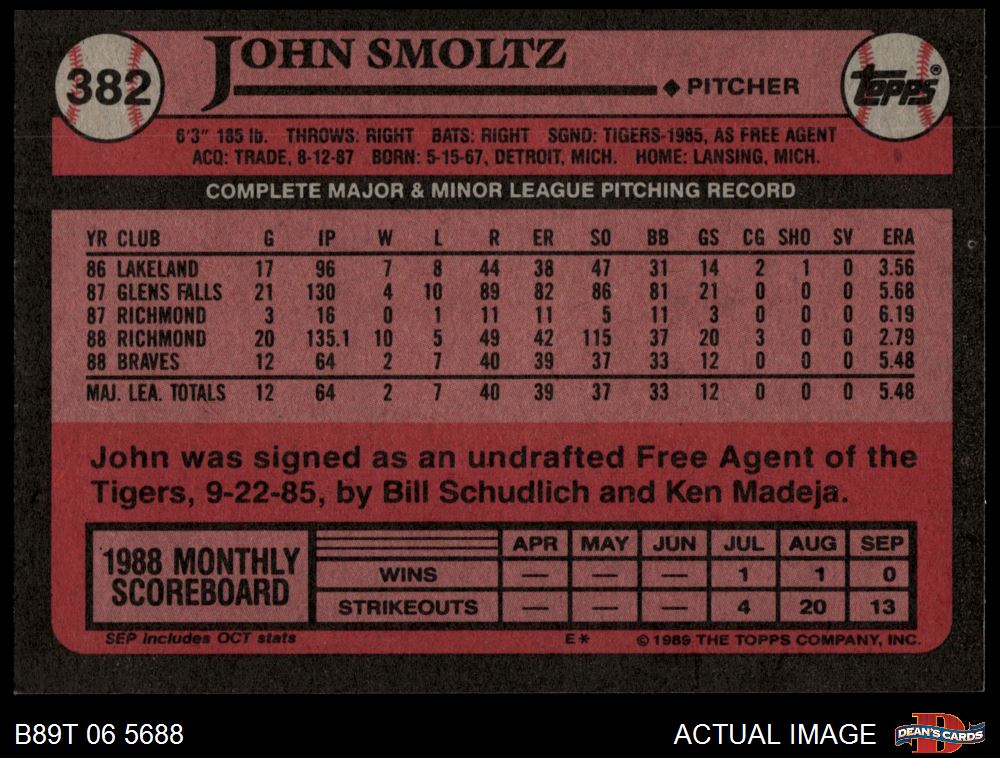 1989 Topps #382 John Smoltz