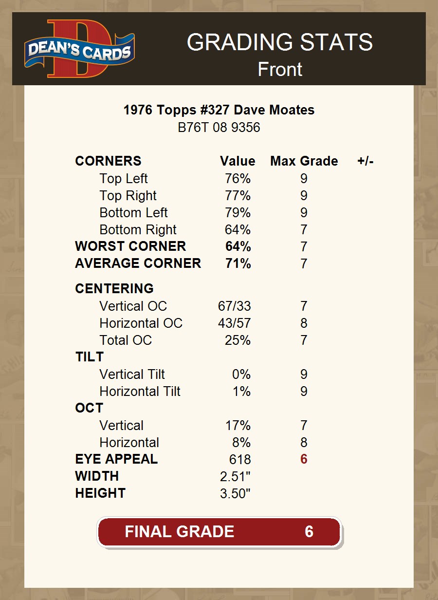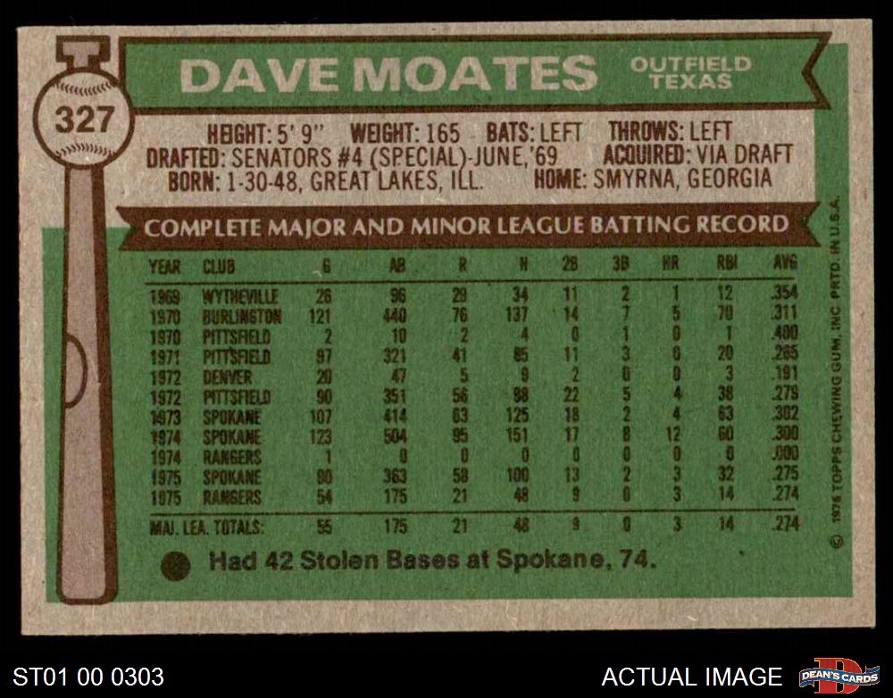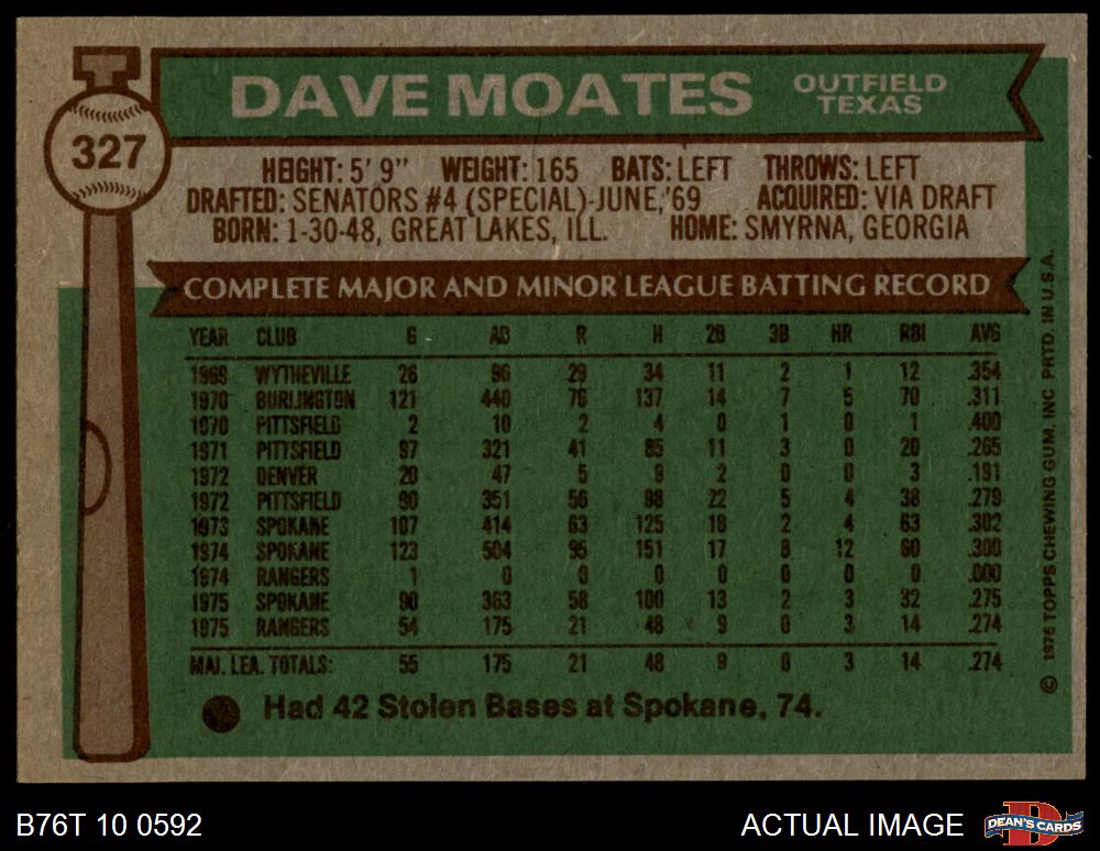1976 Topps #327 Dave Moates 6 - EX/MT